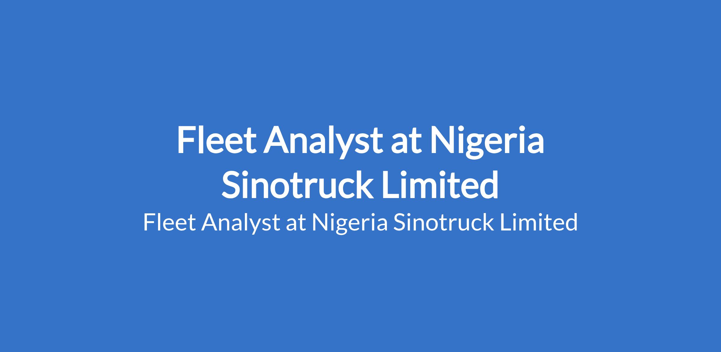 Nigeria Sinotruck Limited is recruiting to fill the position of: Fleet Analyst. The position is located in Benin, Edo State. Interested candidates should possess an OND qualification only in Mechanical Engineering, Statistics, Mathematics or its equivalent with a minimum of two years work experience in Fleet Management or similar roles.