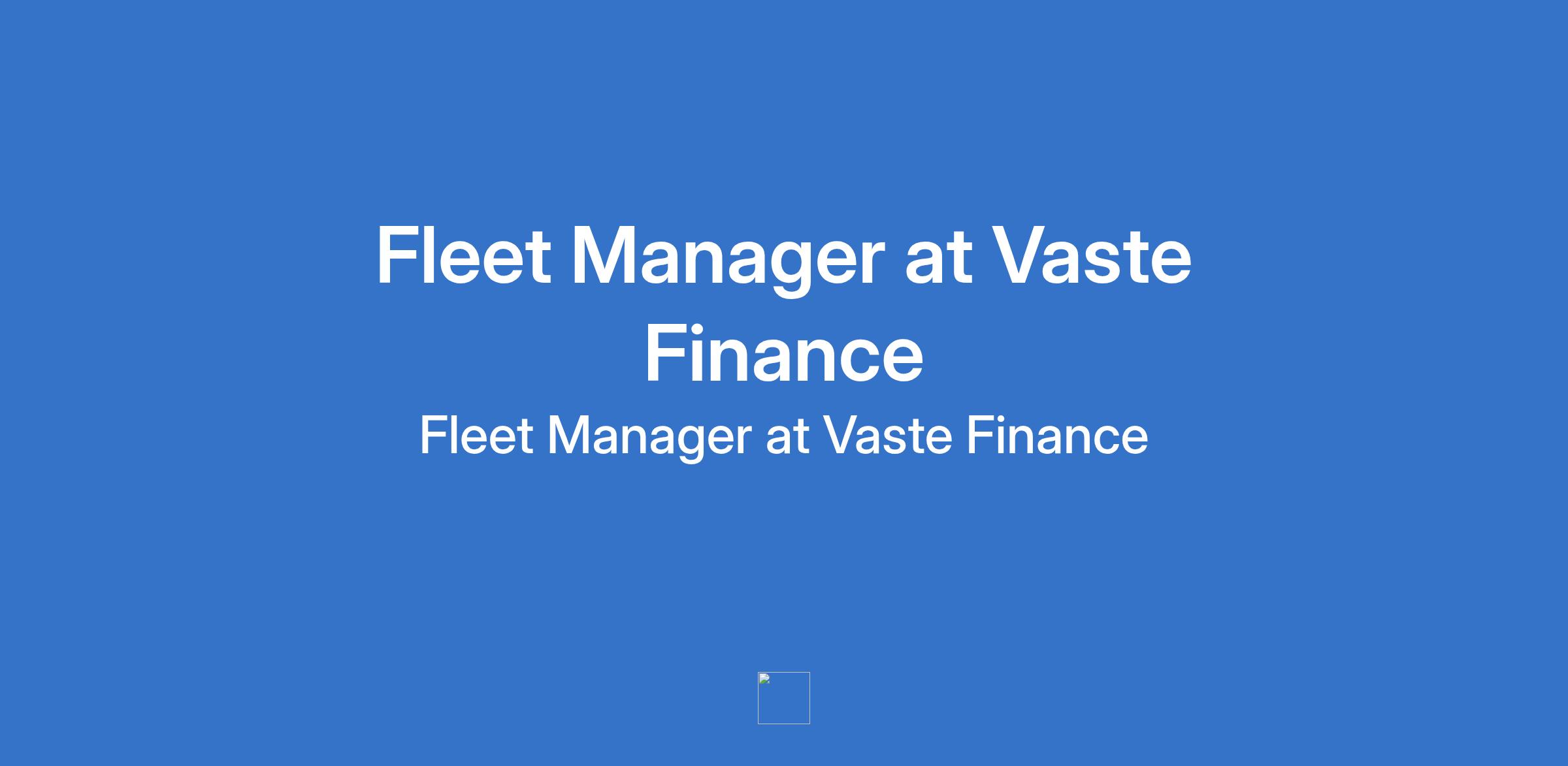 Fleet Manager at Vaste Finance