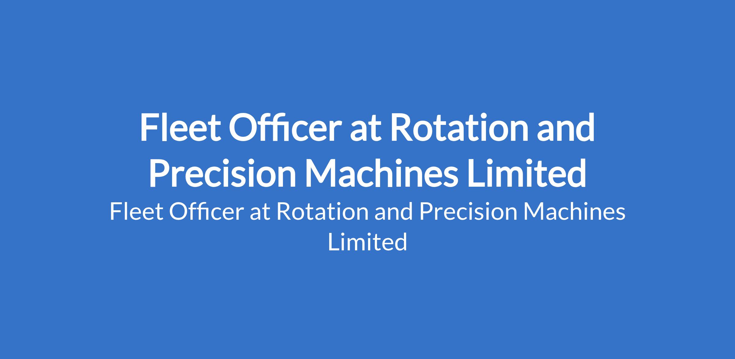 Rotation and Precision Machines Limited is recruiting to fill the position of: Fleet Officer. The position is located in Lagos State. Interested candidates should possess relevant qualifications with proven experience in fleet or transport management.