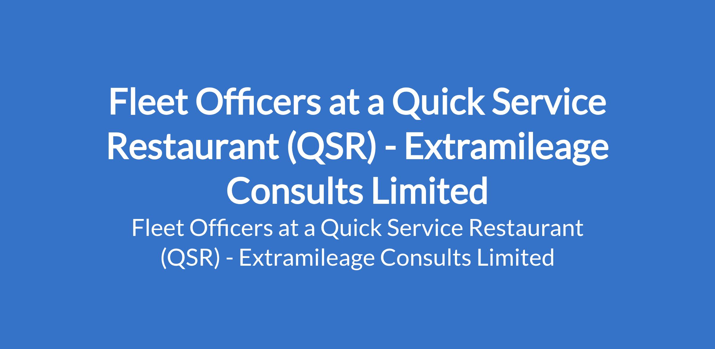 Extramileage Consults Limited - Our client, a Quick Service Restaurant (QSR) is recruiting to fill the position of: Fleet Officer. The position is located in Wuse, Abuja (FCT). Salary: N150,000 monthly. Interested candidates should possess a relevant qualifications with at least 2 years experience in similar role.