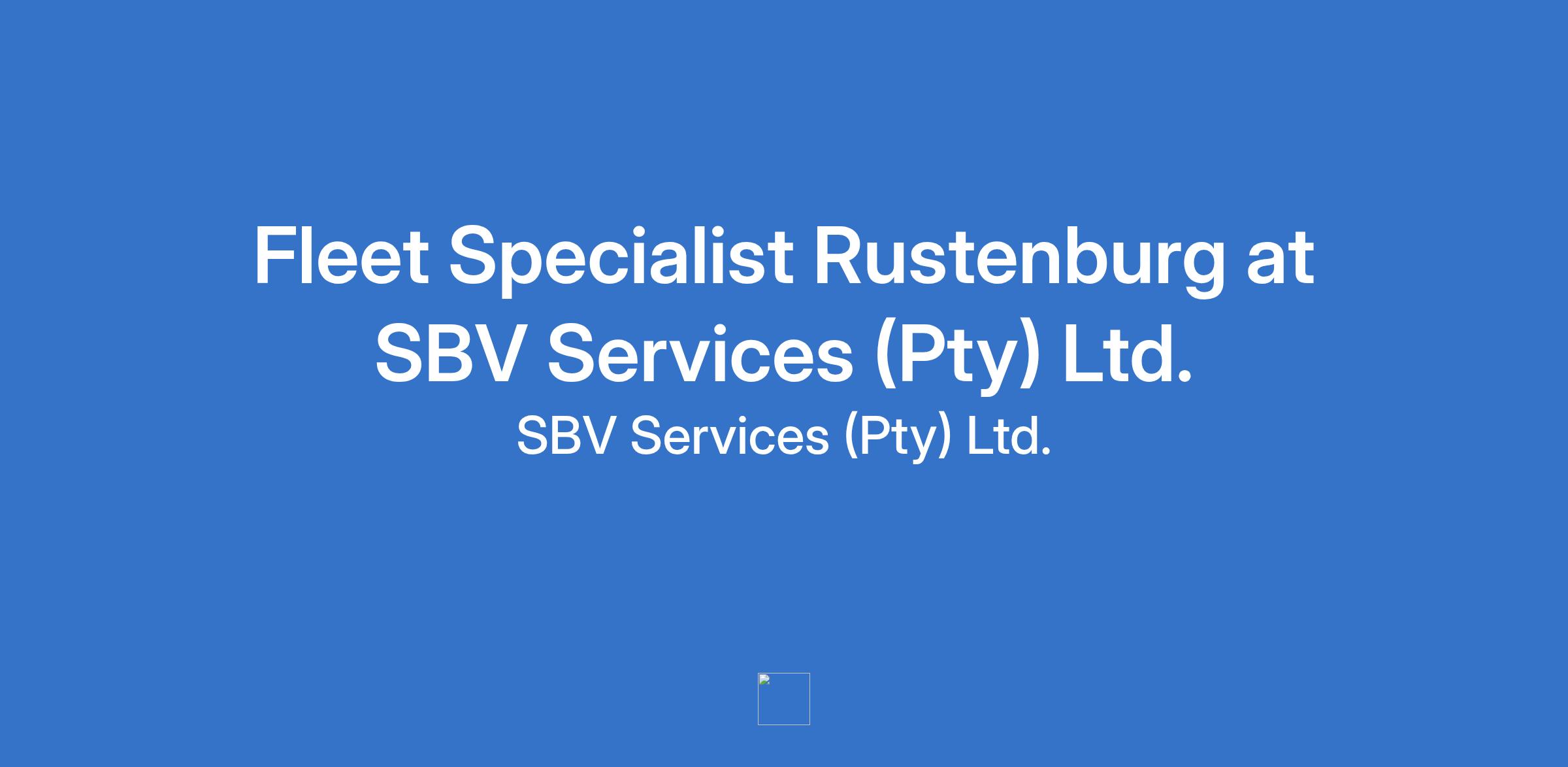 Fleet Specialist Rustenburg at SBV Services (Pty) Ltd.