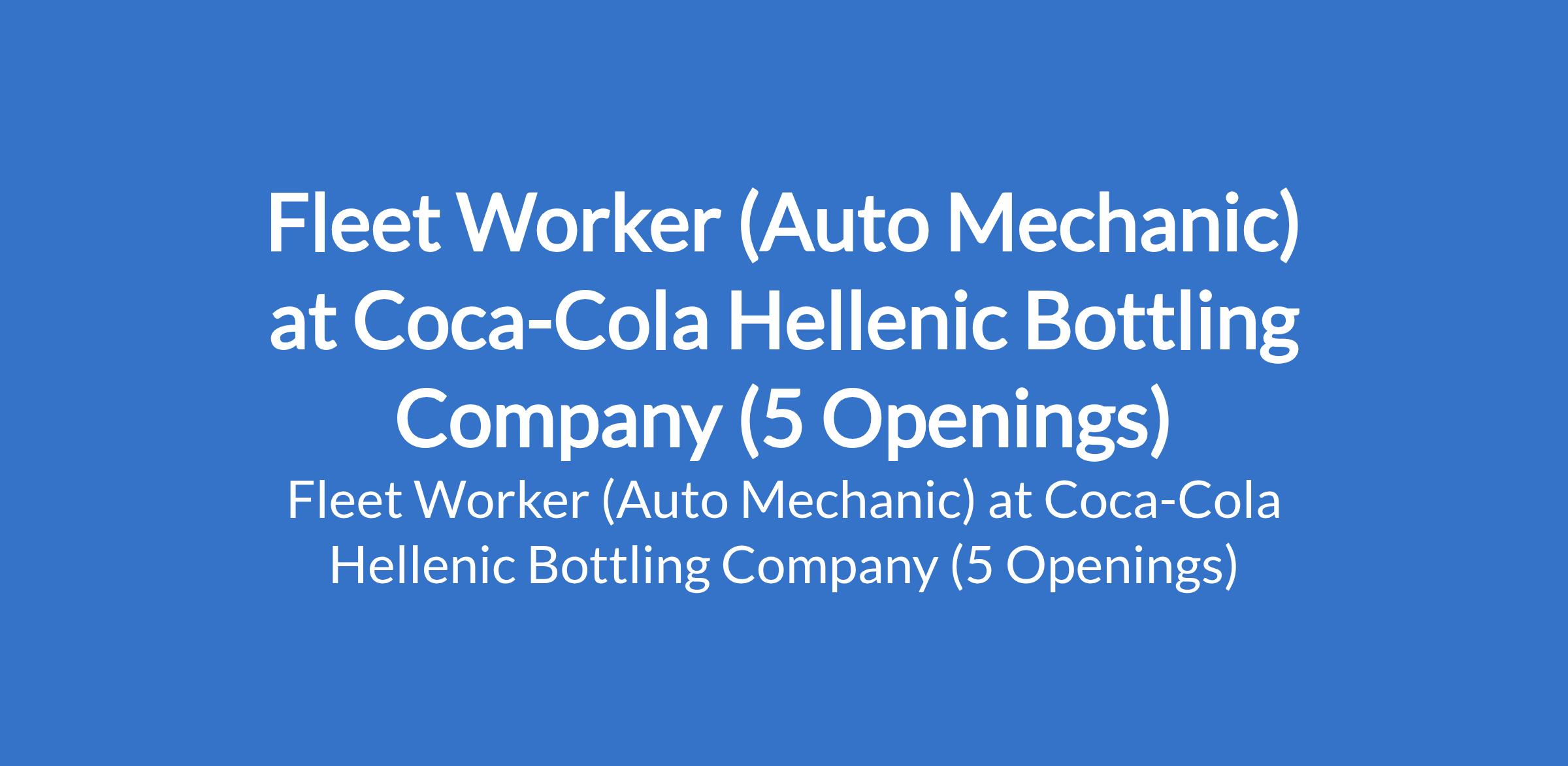 Coca-Cola Hellenic Bottling Company is recruiting to fill the position of: Fleet Worker (Auto Mechanic). The position is located in Kaduna, Benin - Edo, Owerri - Imo, Port Harcourt - Rivers and Ikeja - Lagos States. Interested candidates should possess an HND or B.Sc in Mechanical, Mechatronics, Electrical or Agricultural (Power Option) Engineering with 2 years experience in related roles.