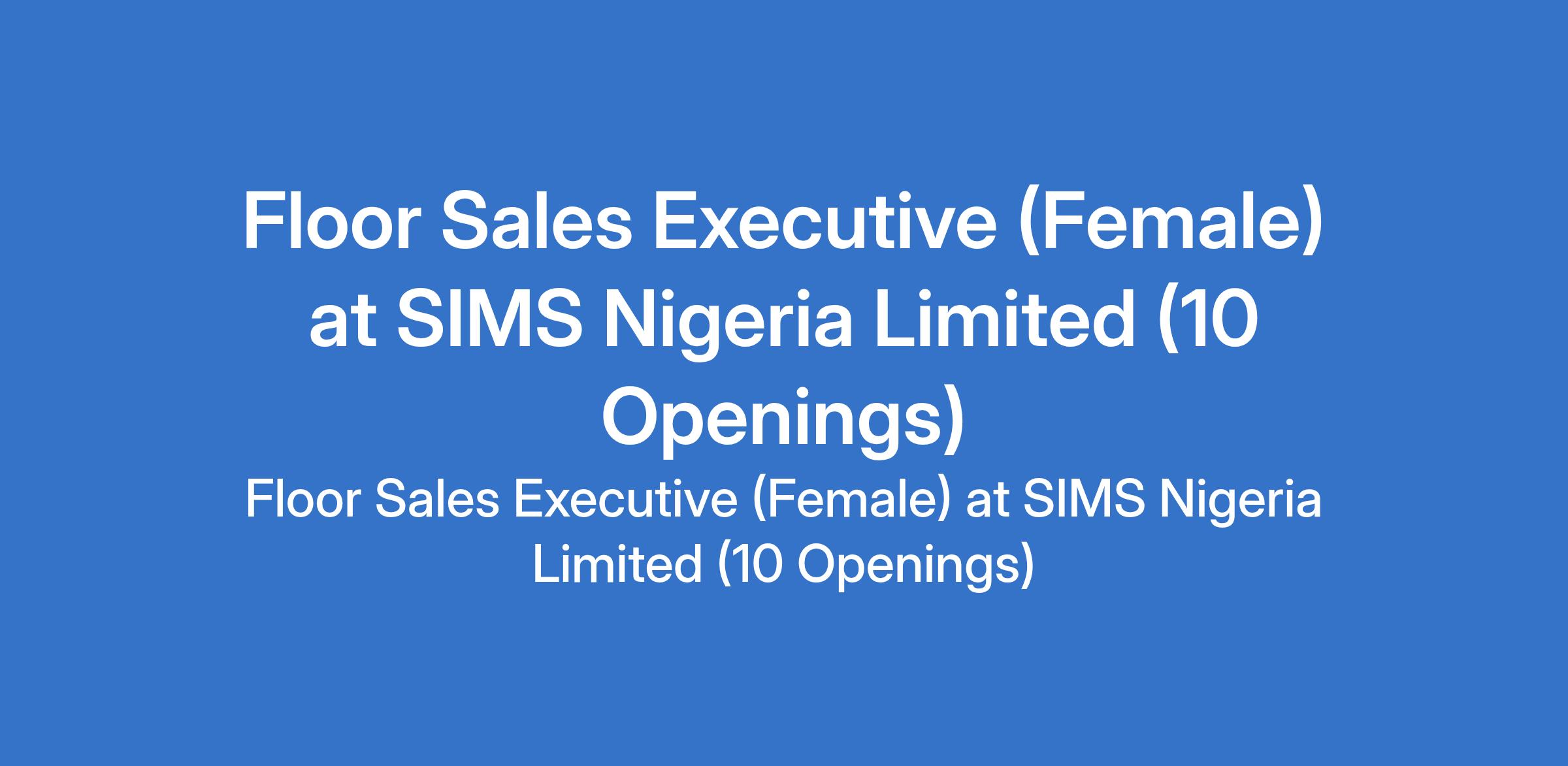 SIMS Nigeria Limited is recruiting to fill the position of: Floor Sales Executive (Female). The position is located in Abuja; ICM, Ajah, Aguda, Amuwo-Odofin, Omole - Lagos; Onitsha and Awka - Anambra; Kaduna; and Owerri - Imo States. Interested candidates should possess minimum of a 2nd class HND / B.Sc / BA Degree in any discipline with 1 - 3 years work experience and be females (for gender balance).