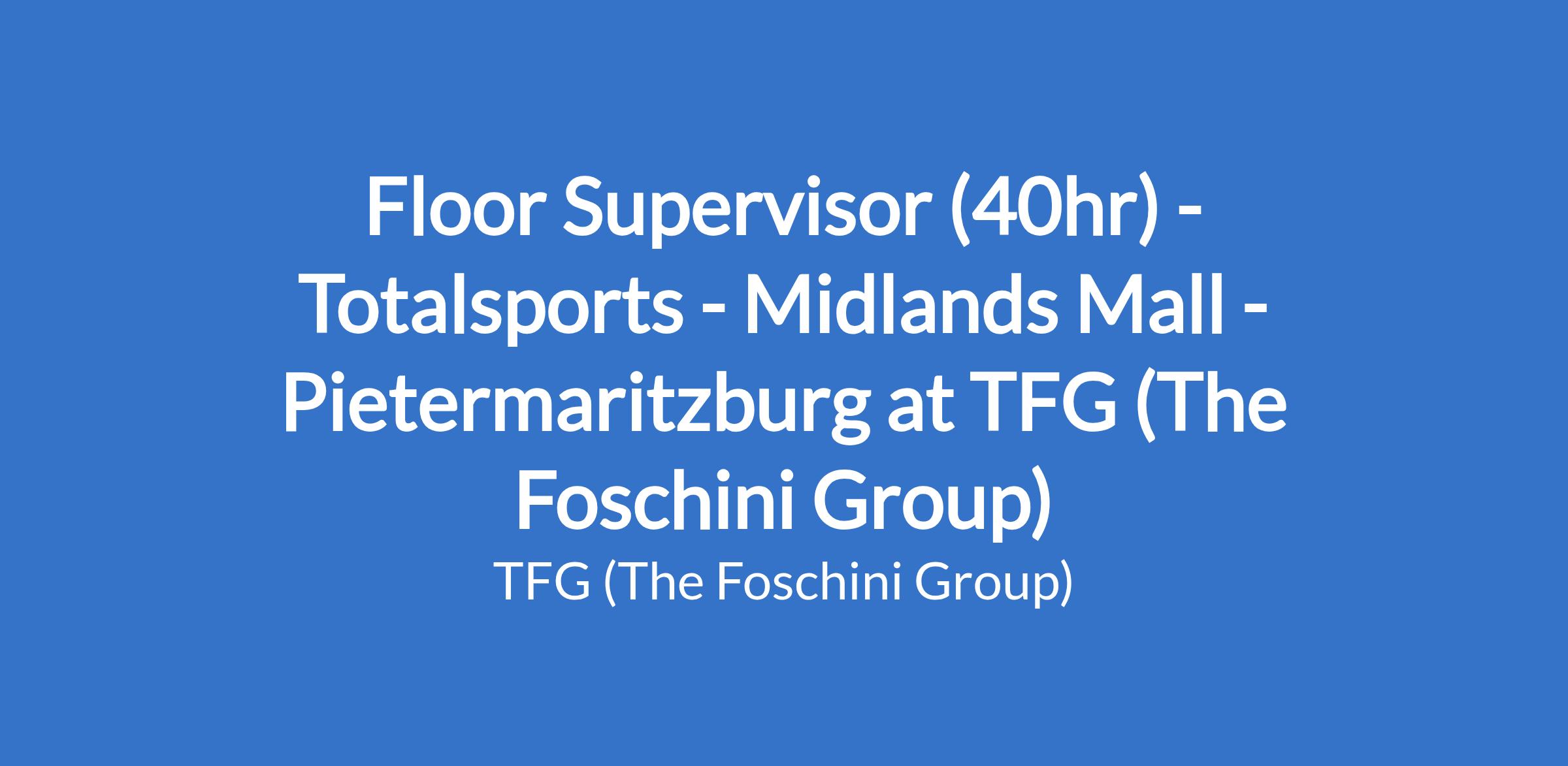 Floor Supervisor (40hr) - Totalsports - Midlands Mall - Pietermaritzburg at TFG (The Foschini Group)