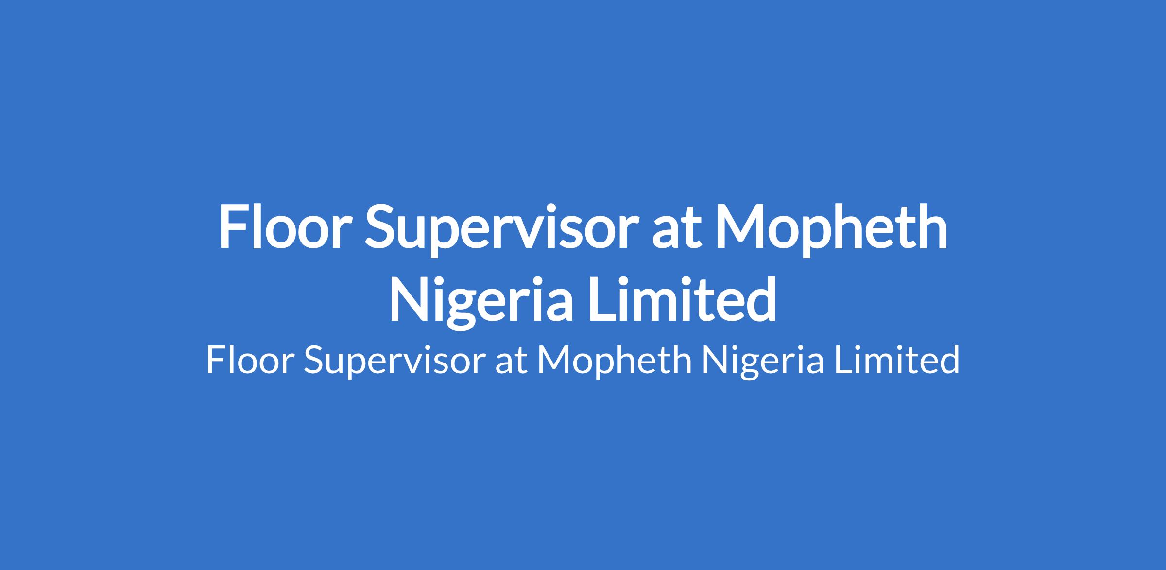 Mopheth Nigeria Limited is recruiting to fill the position of: Floor Supervisor. The position is located in Lekki / Victoria Island (VI), Lagos State. Interested candidates should possess relevant qualifications with 5 years experience in a supermarket/retail environment.
