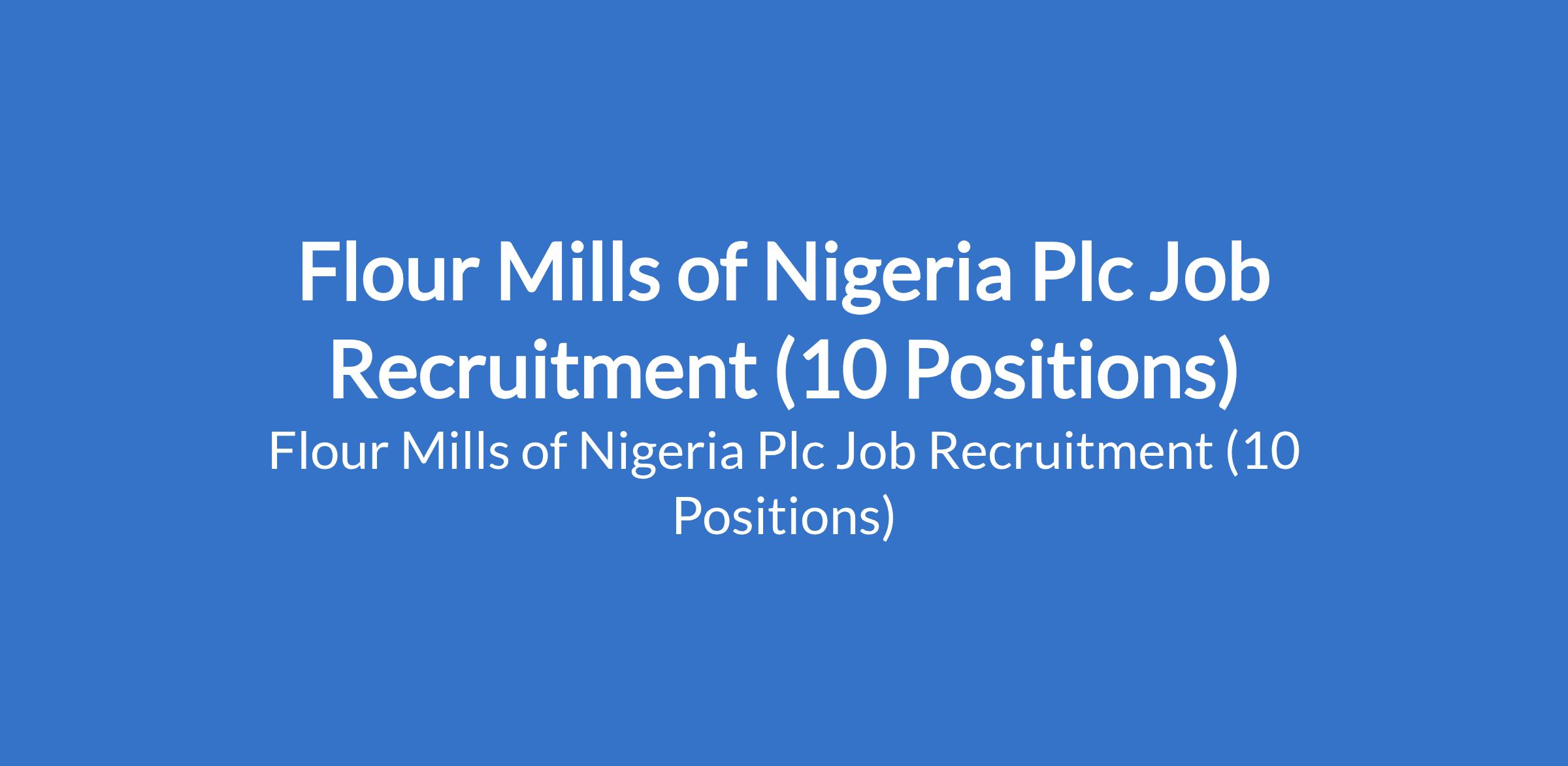 Flour Mills of Nigeria Plc is recruiting suitably qualified candidates to fill the following positions in Lagos State: Professional Assistant; Personal Assistant; Offals - Pelletizing Manager - Golden Penny Foods; Category Manager; Forensic Officer; Assistant Dispatch Manager; Assistant Accountant; Assistant Manager; Trade Development; & Security Risk and Infrastructure Manager.