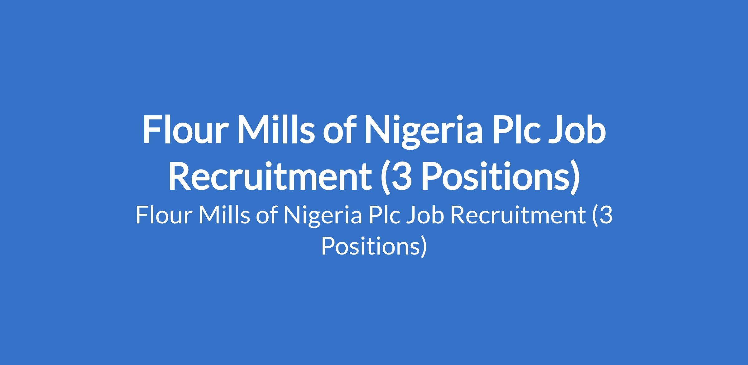 Flour Mills of Nigeria Plc Job Recruitment (3 Positions)