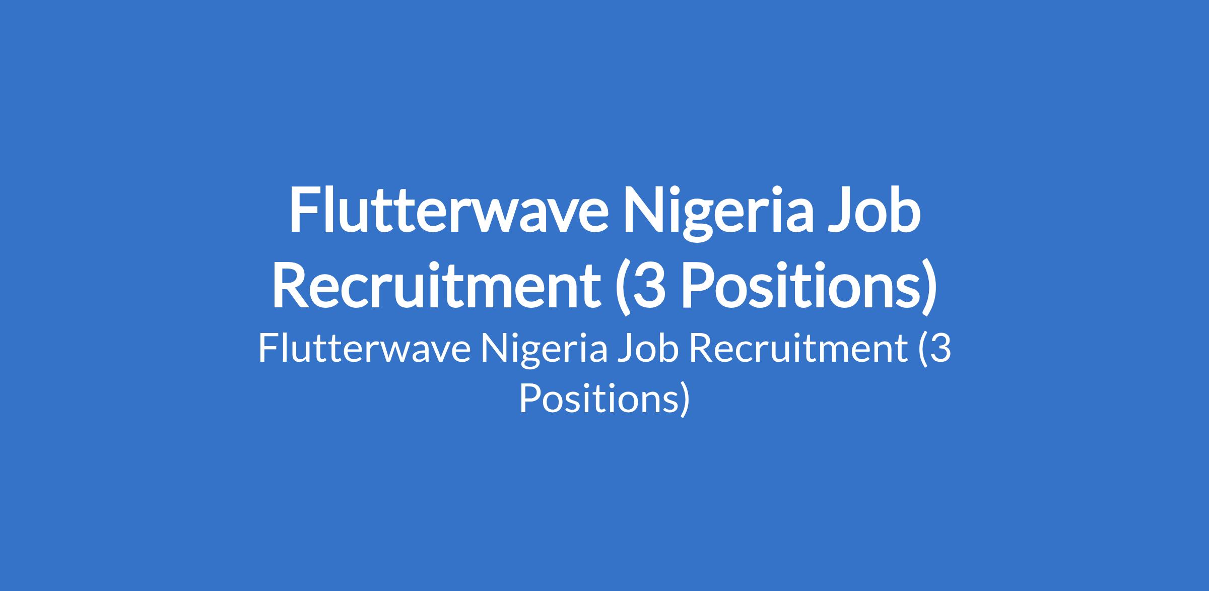Flutterwave Nigeria Job Recruitment (3 Positions)