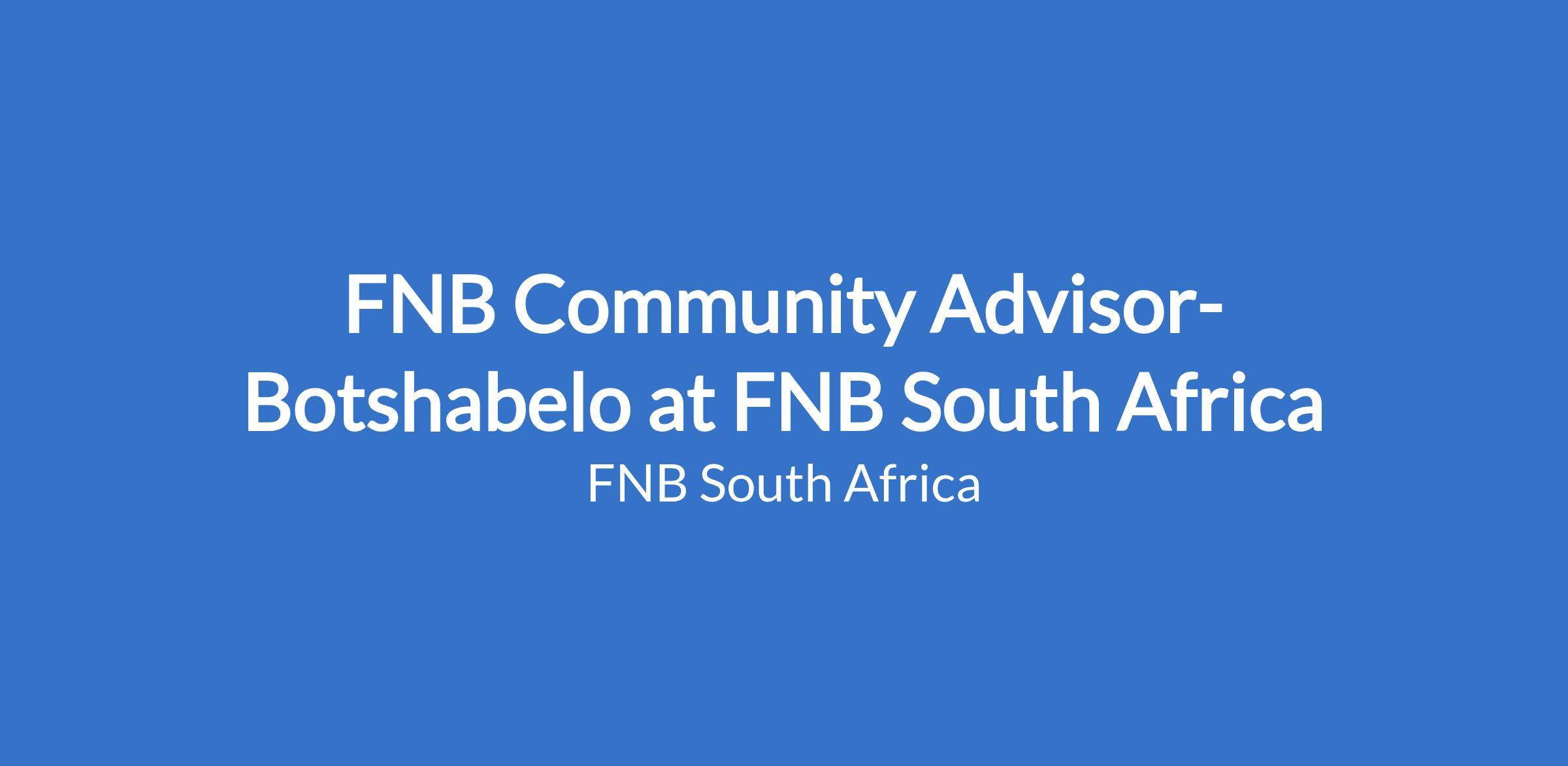 FNB Community Advisor- Botshabelo at FNB South Africa