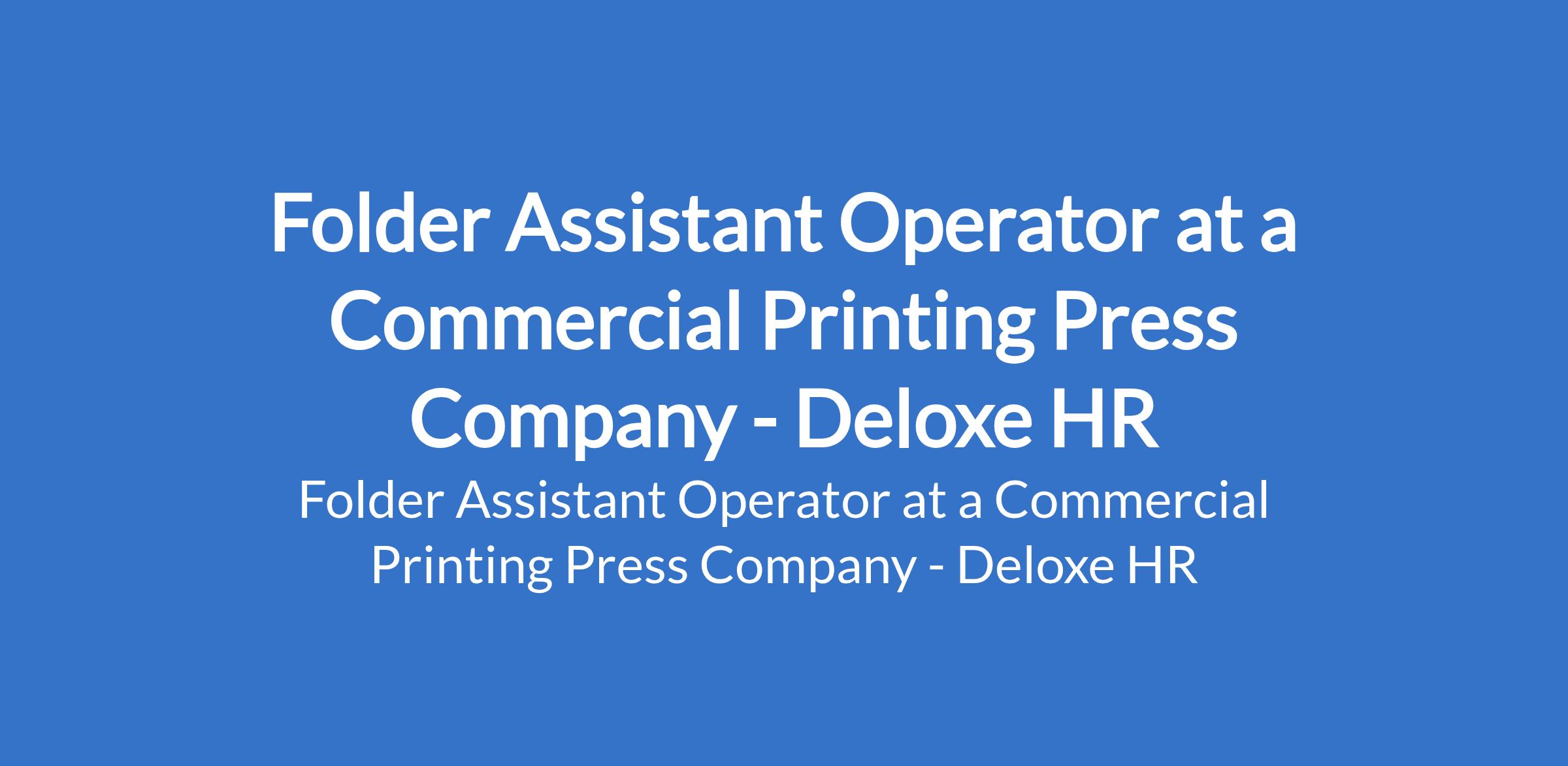 Deloxe - Our client, a Commercial Printing Press company is recruiting to fill the position of: Folder Assistant Operator. The position is located in Ikeja, Lagos State. Interested candidates should possess relevant qualifications with 5 years of work experience.