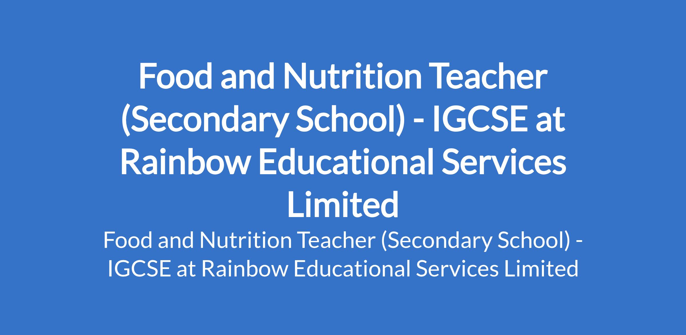 Rainbow Educational Services Limited is recruiting to fill the position of: Food and Nutrition Teacher (Secondary School) - IGCSE. The position is located in Surulere, Lagos State. Interested candidates should possess a Bachelor's Degree in Home Economics, Food and Nutrition, Education, or a related field; teaching certification/license with a minimum of 5 years of experience.