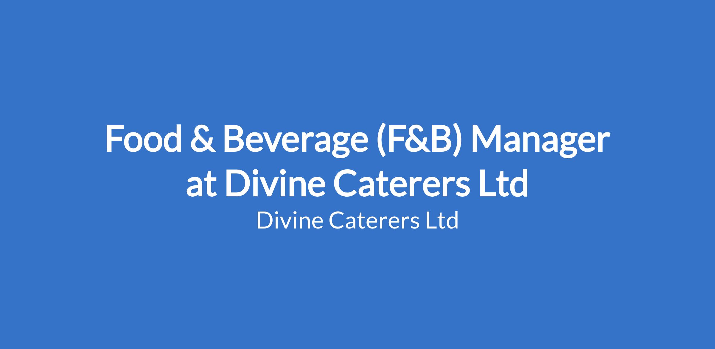 Diploma or Degree in Hospitality, Food & Beverage Management, or related field.
