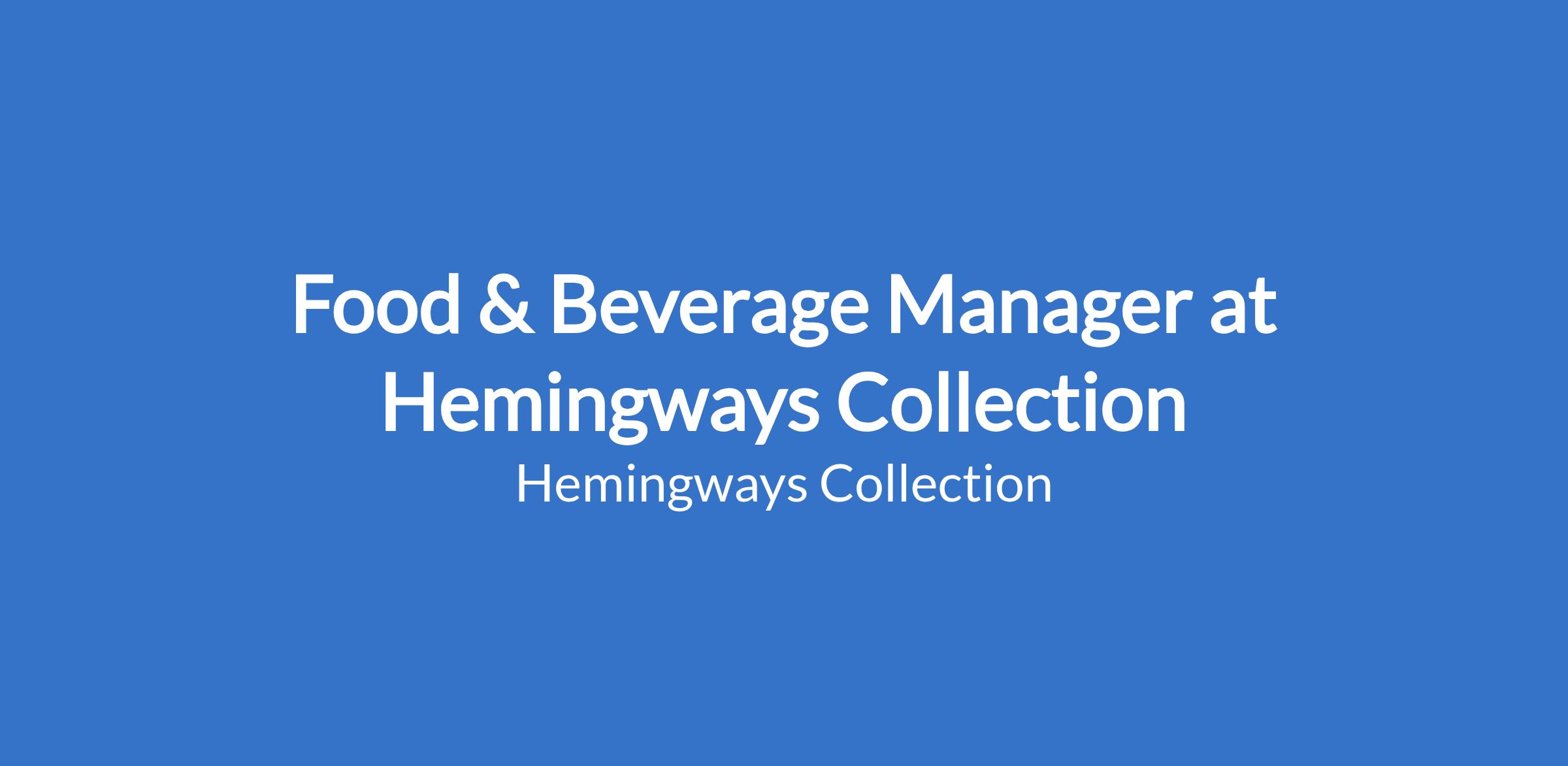 We are looking for a Food & Beverage Manager with: