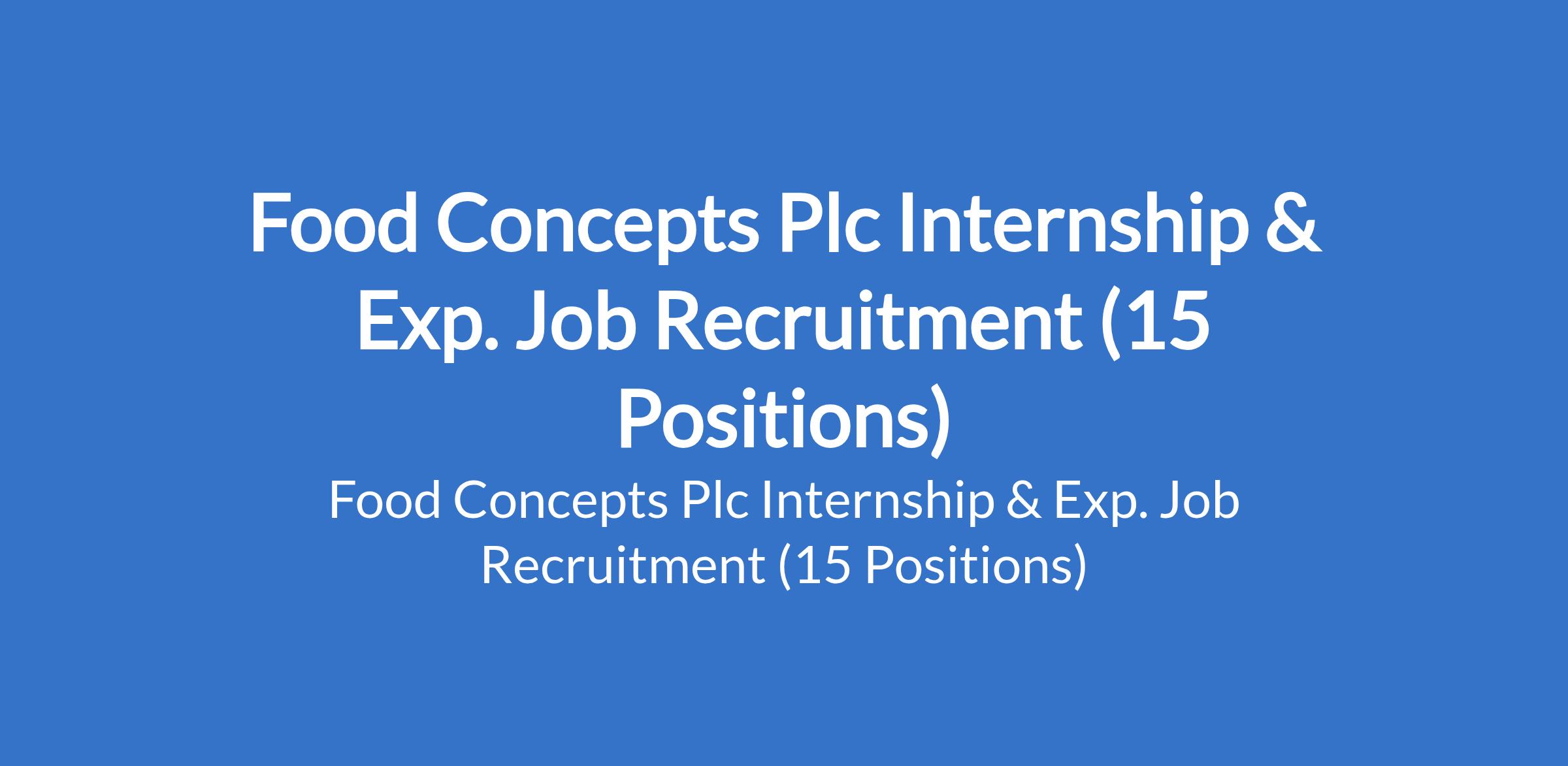 Food Concepts Plc is recruiting suitably qualified candidates to fill the following internship and experienced positions in Lagos State: Restaurant Operative, Information Technology (IT) Intern, Indirect Payable Associate, Data Analyst Officer, Compliance Associate, and Admin Officer.