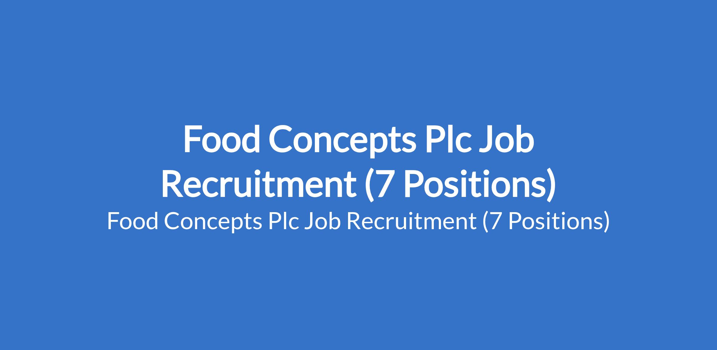 Food Concepts Plc Job Recruitment (7 Positions)