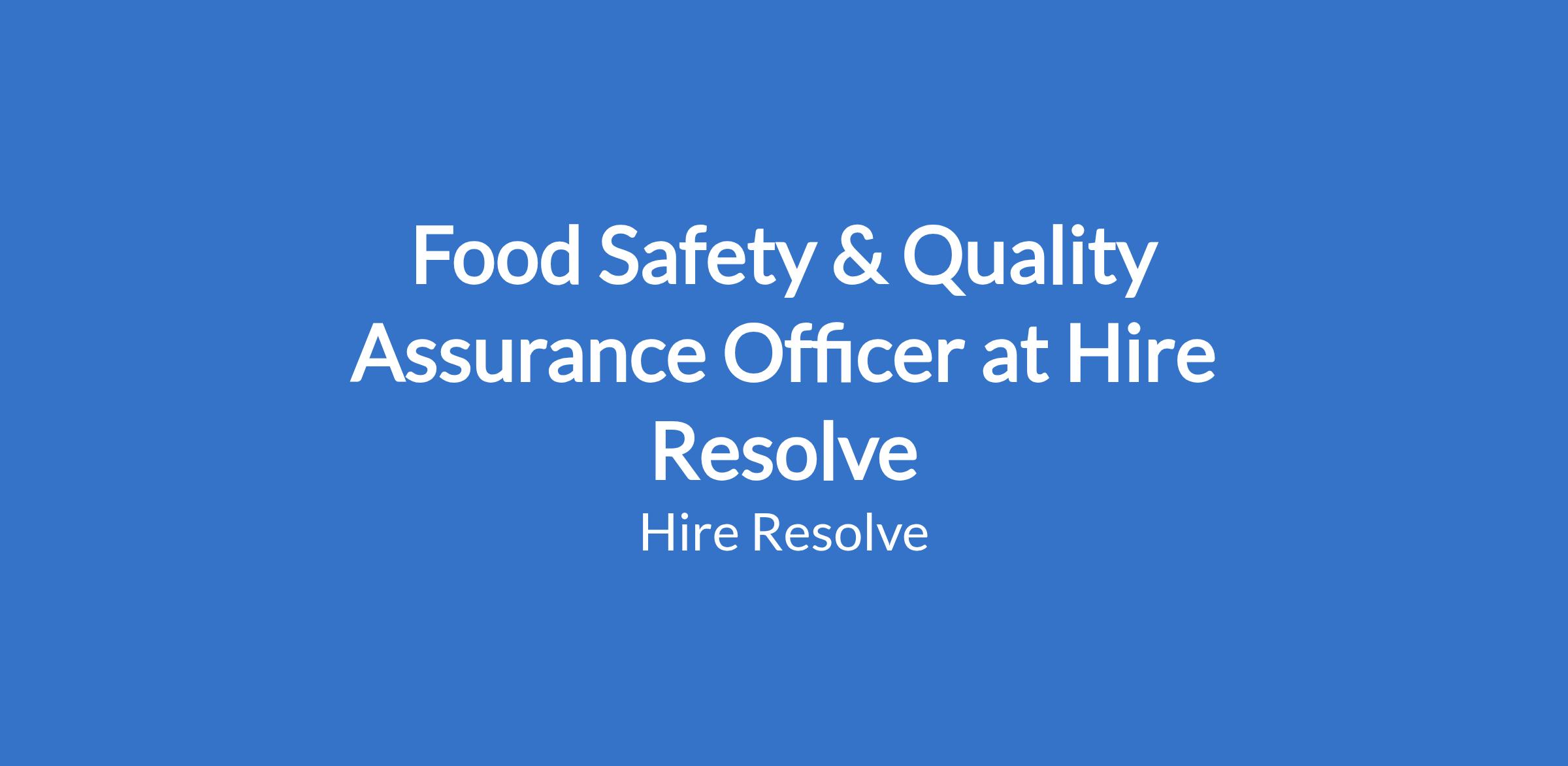 Food Safety & Quality Assurance Officer at Hire Resolve
