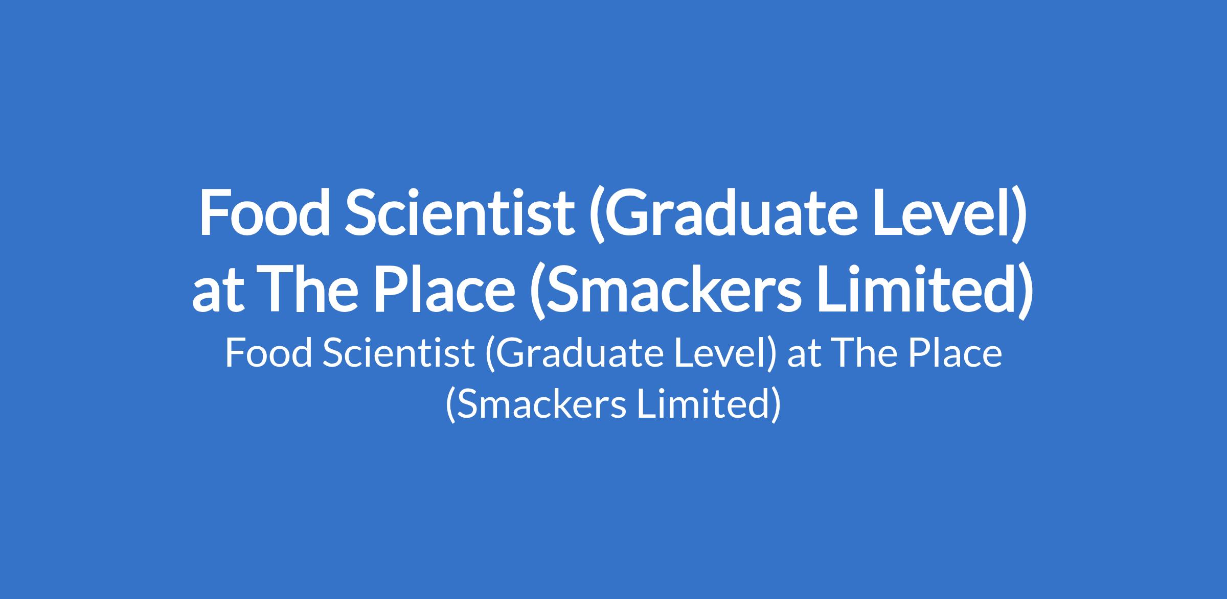 The Place (Smackers Limited) is recruiting to fill the position of: Food Scientist (Graduate Level). The position is located in Lagos State. Interested candidates should possess a minimum of a second-class Upper Degree in Food Science, Management Science or related fields, must have finished one - year NYSC service.