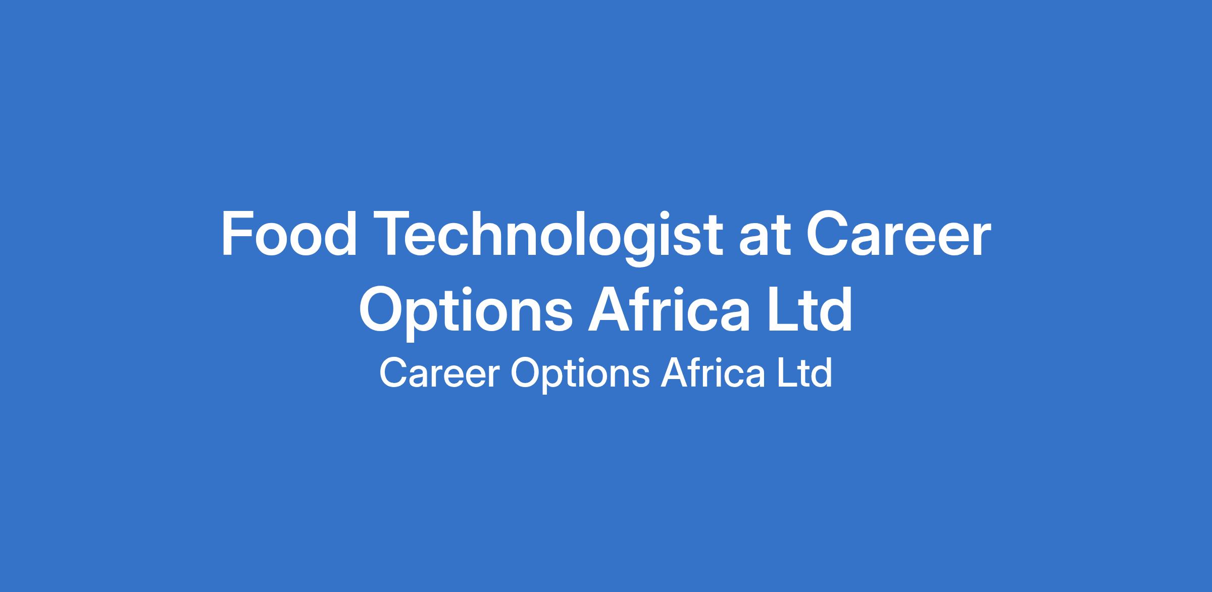 Career Options Africa Group is a HR Consultancy firm specializing in Recruitment, HR outsourcing, and Immigration support in Africa with offices in Kenya, Uganda, Tanzania, Rwanda, Democratic Republic of Congo (DRC), Burundi, Nigeria, South Africa, and South Sudan. Our client is currently seeking diligent candidates for the position of Food Technologist.