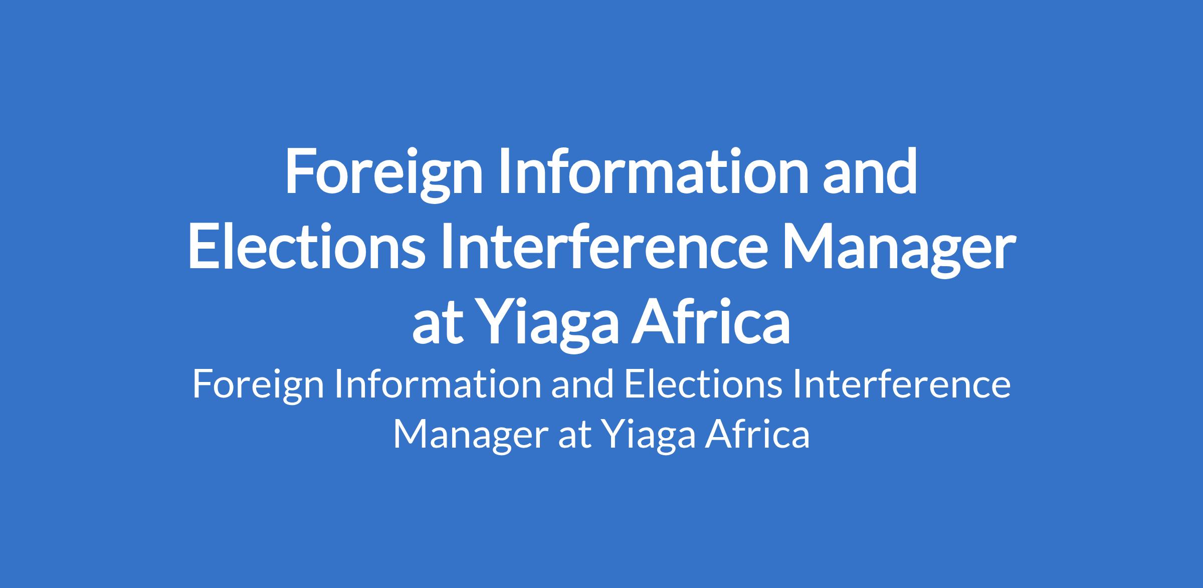 Yiaga Africa is recruiting to fill the position of: Foreign Information and Elections Interference Manager. The position is located in Abuja (FCT). Interested candidates should possess an Advanced Degree in Political Science, International Relations, Media Studies, Public Policy, Cybersecurity, or a related field with a minimum of 7 years of professional experience, with significant experience working on democracy, governance, information integrity, media policy, or election security.