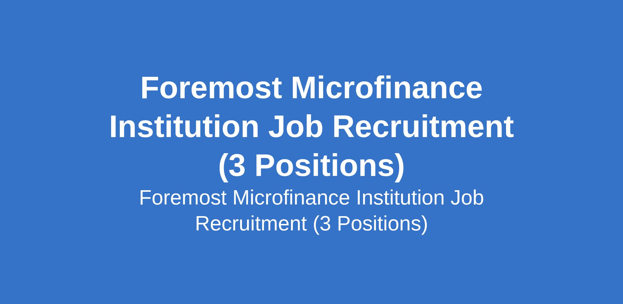 Foremost Microfinance Institution Job Recruitment (3 Positions)