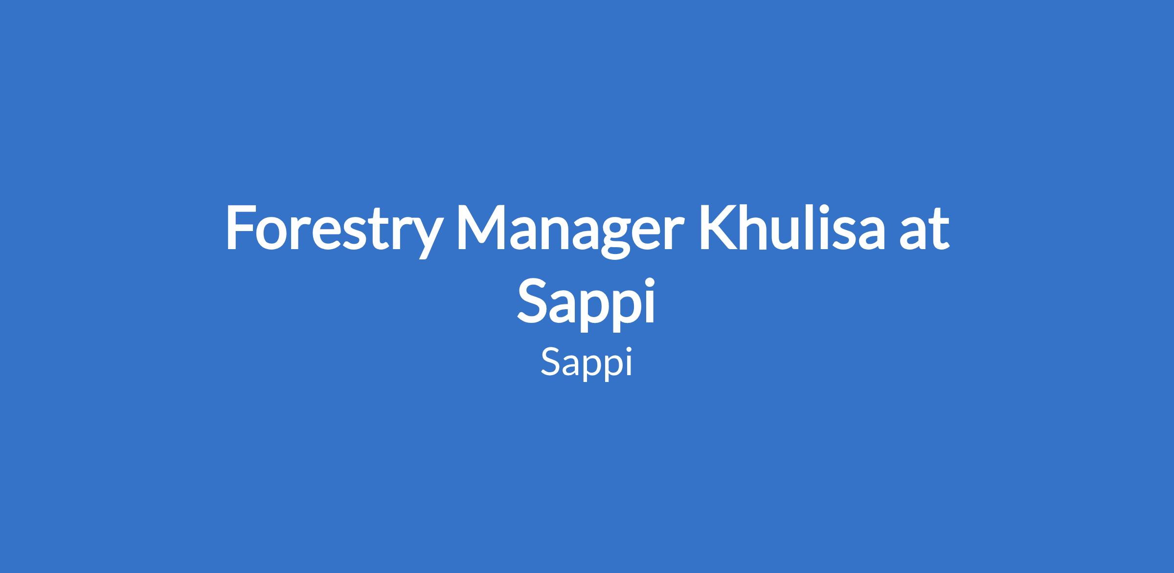 Sappi Forests requires a Forestry Manager - Khulisa to manage sustainable wood fibre supply into the various Sappi markets; balanced supply according to market demand; grow local enterprise and supply capacity to support growth whilst developing and growing local economy through facilitating cooperation by all stakeholders and build synergies with relevant departments. This position will oversee KZN South.
