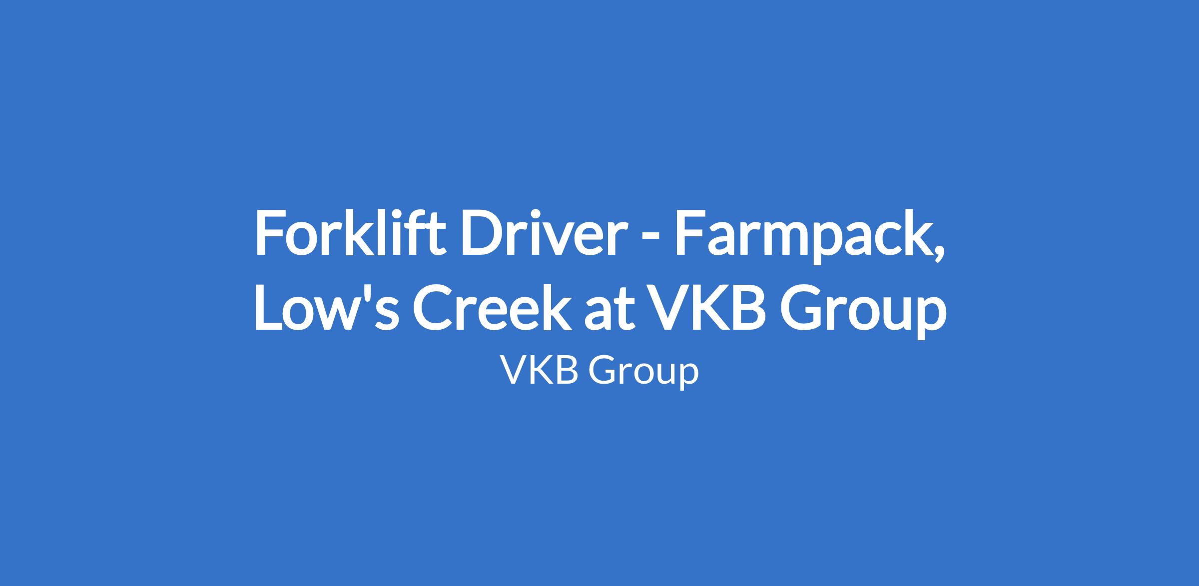 Forklift Driver - Farmpack, Low's Creek at VKB Group