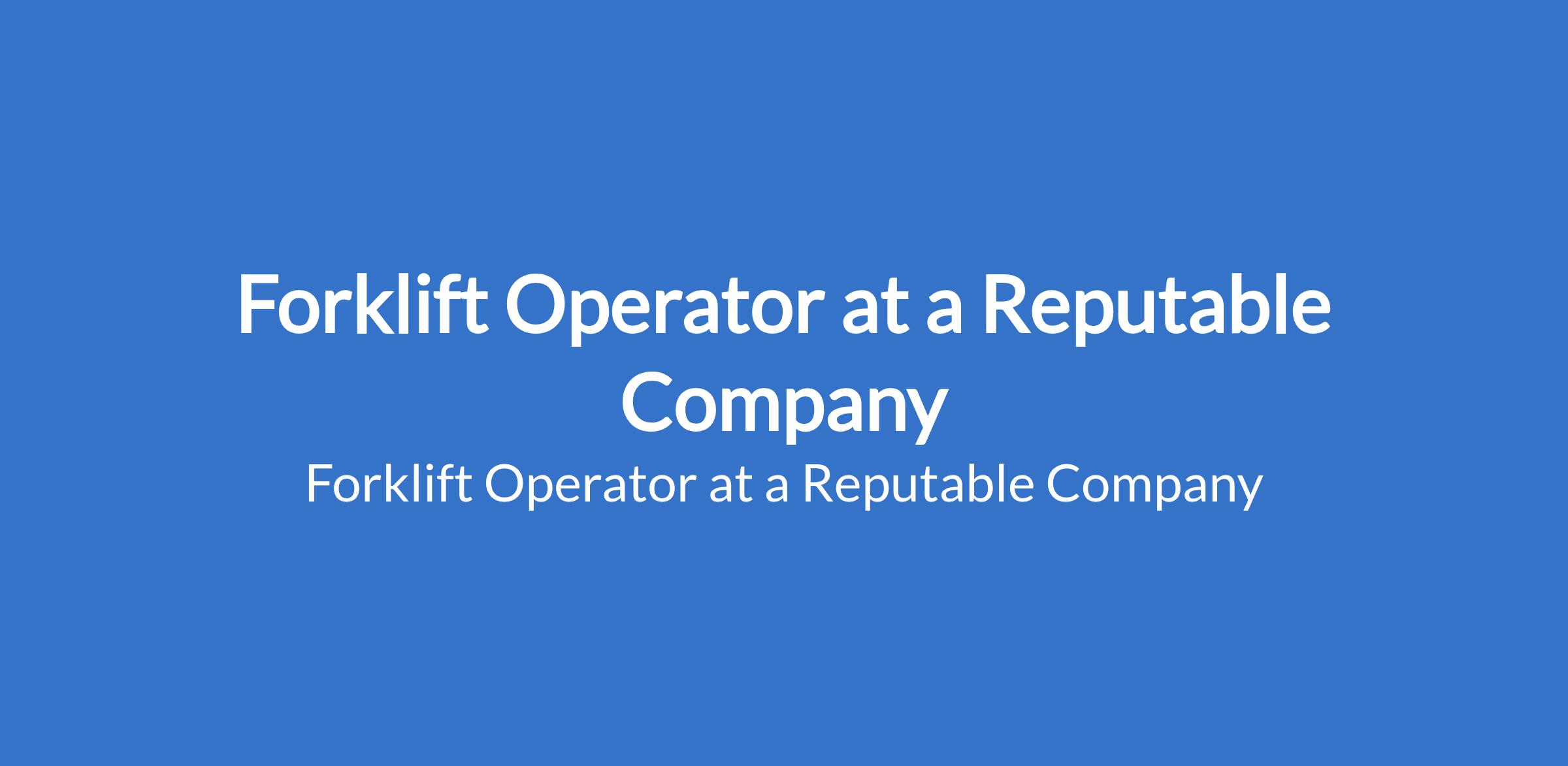 Forklift Operator at a Reputable Company