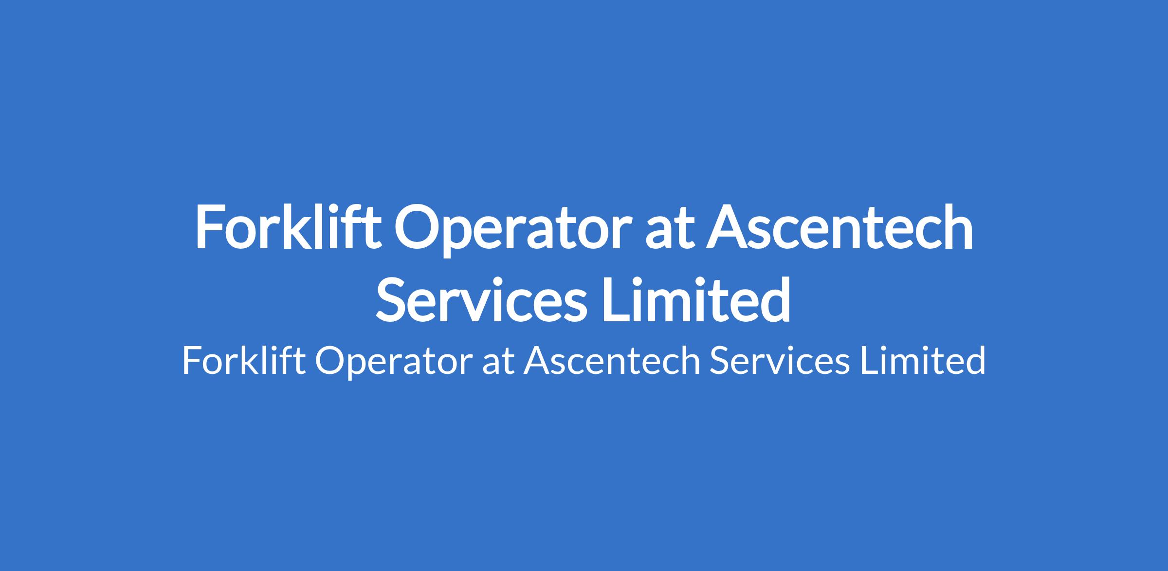 Ascentech Services Limited is recruiting to fill the position of: Forklift Operator. The position is located in Lagos State. Salalry: N90,000 - N100,000 / month. Interested candidates should possess a minimum of a High School Diploma or equivalent with a minimum of 2 years experience.