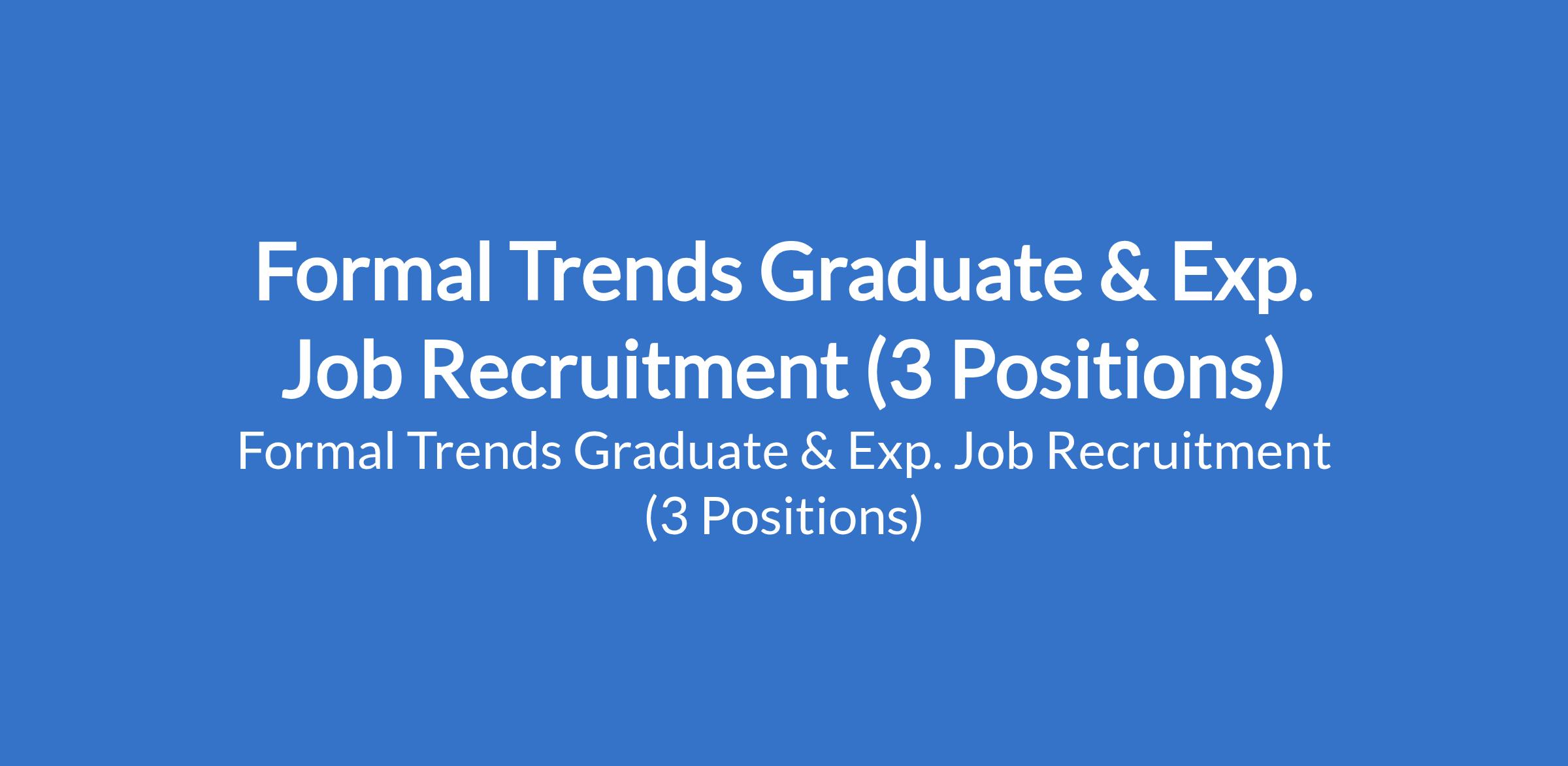 Formal Trends Graduate & Exp. Job Recruitment (3 Positions)