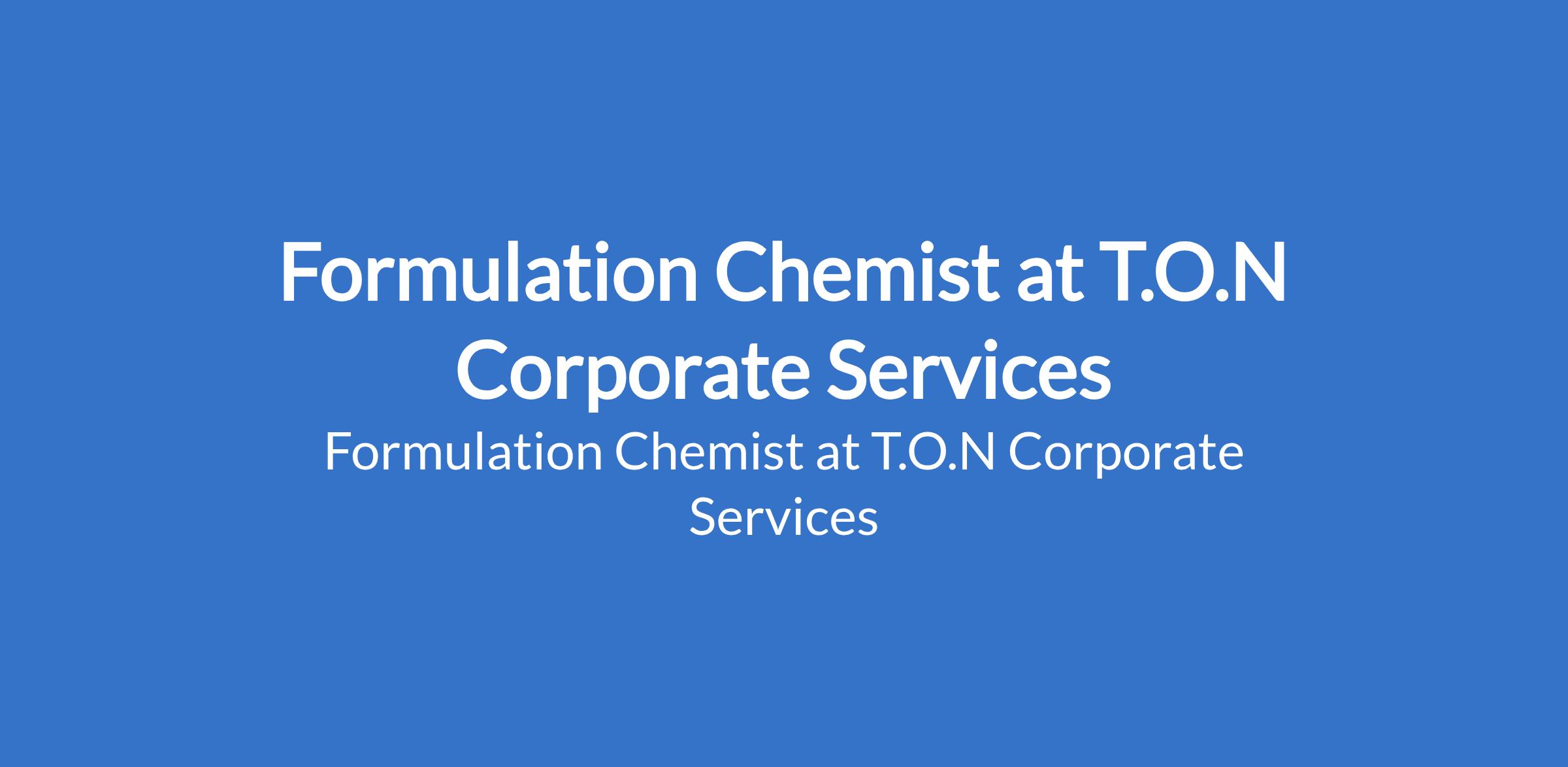 T.O.N Corporate Services is recruiting to fill the position of: Formulation Chemist. The position is located in Sagamu, Ogun State. In this role, you will support the development and optimization of formulations for a range of agrochemical products, contributing to the organizations commitment to quality and performance. Interested candidates should possess a Bachelors Degree in Chemistry, Chemical Engineering, or a related field.