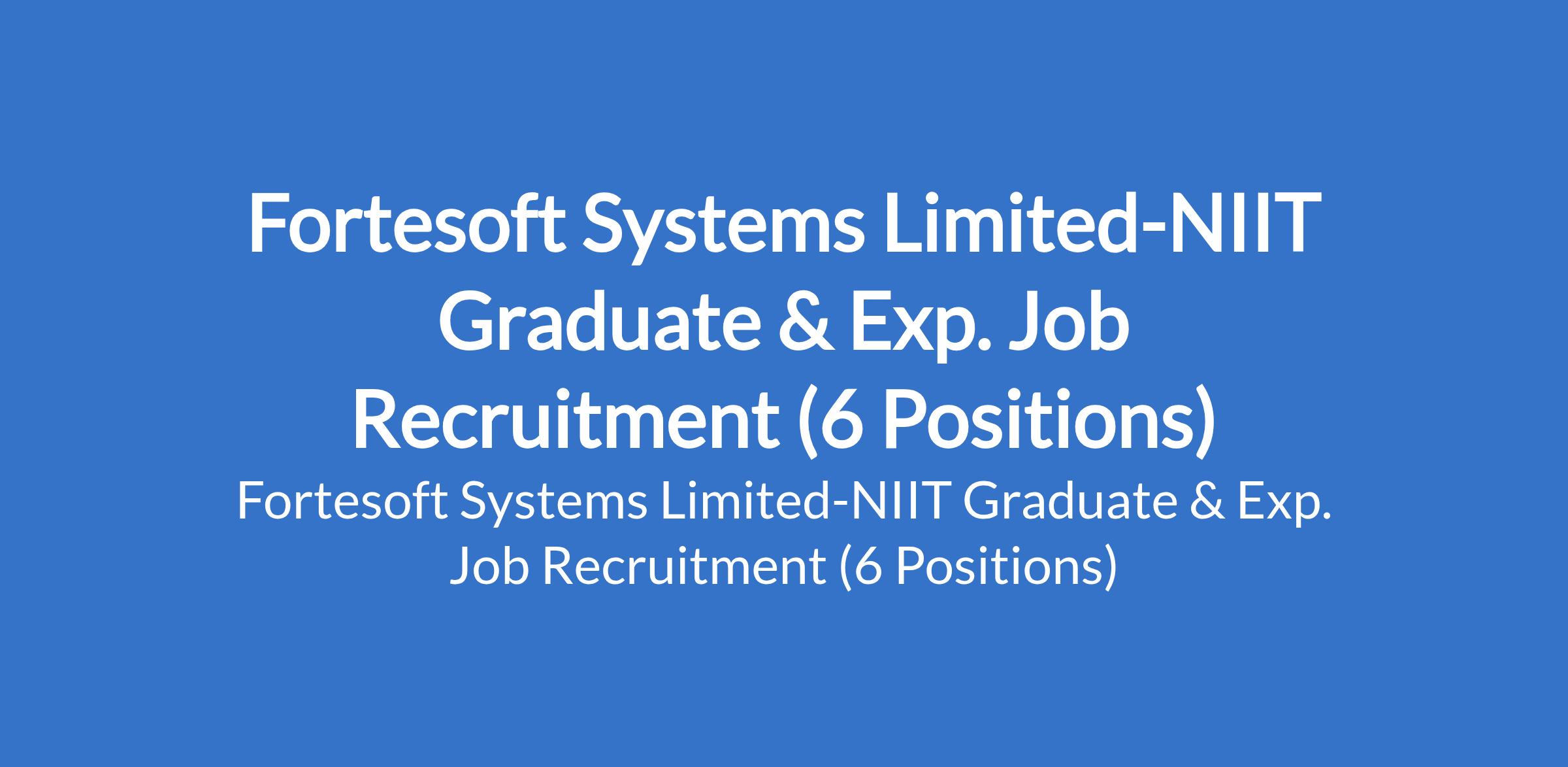 Fortesoft Systems Limited-NIIT Graduate & Exp. Job Recruitment (6 Positions)
