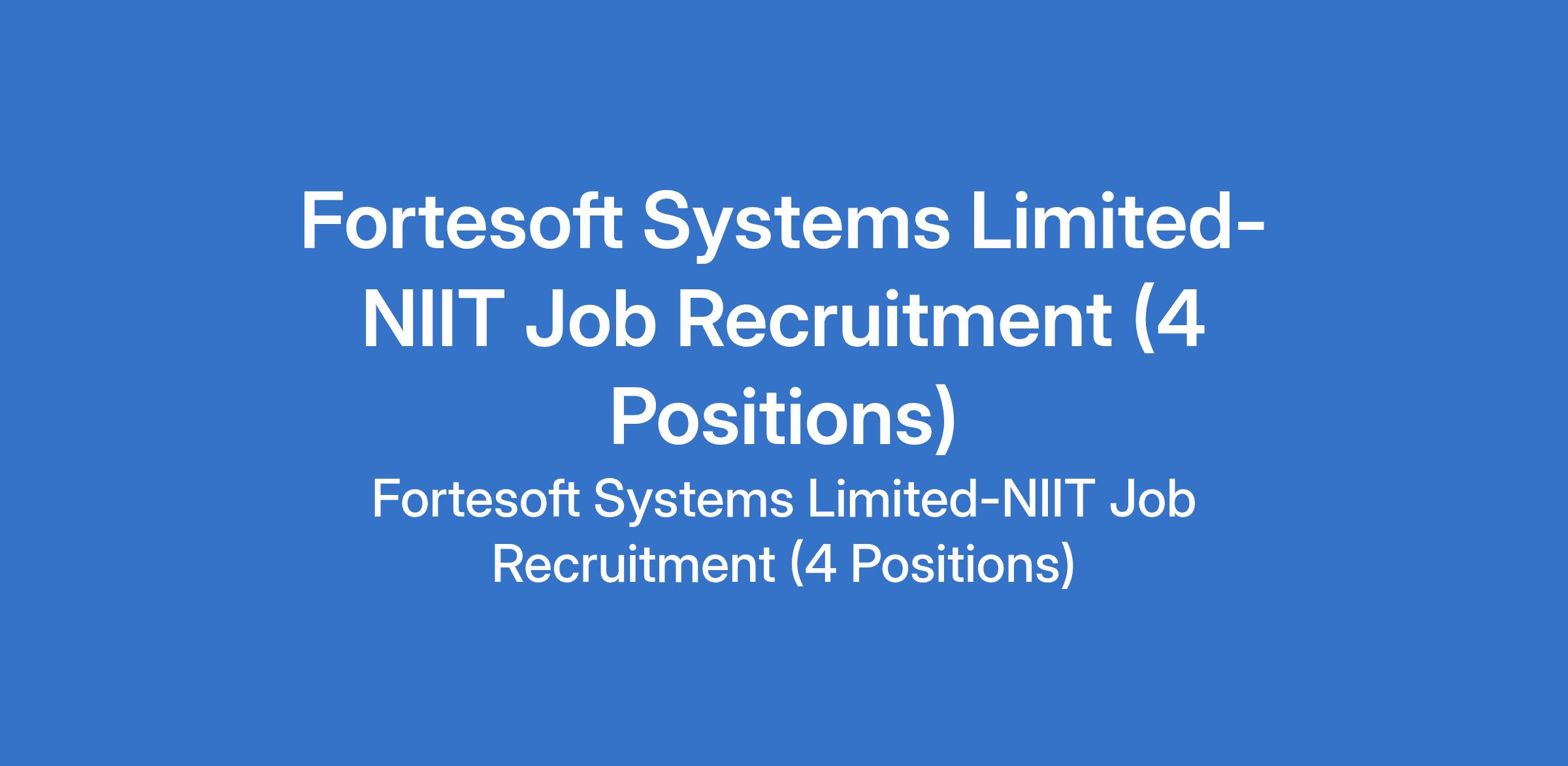 Fortesoft Systems Limited-NIIT Job Recruitment (4 Positions)