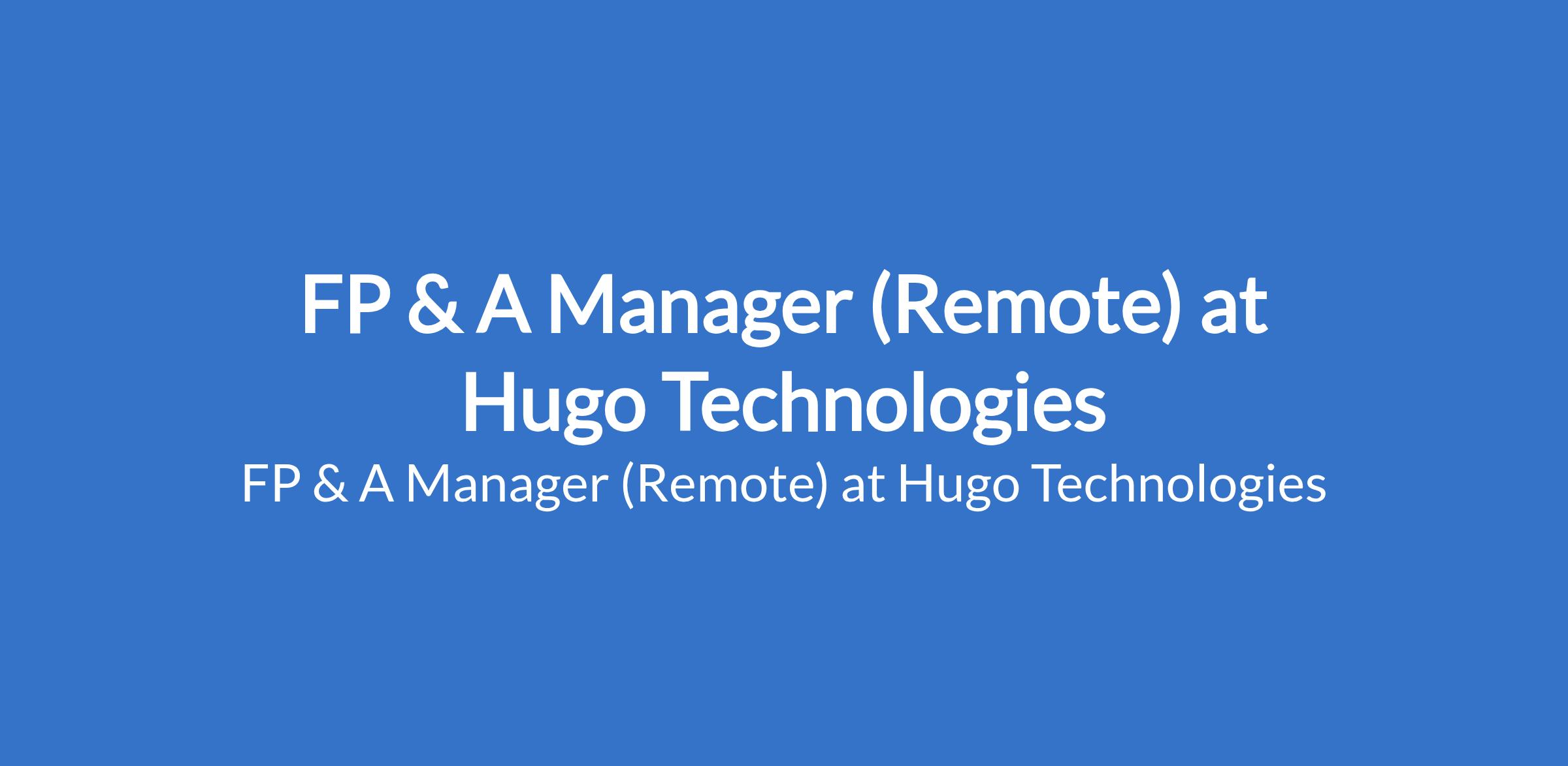 Hugo Technologies is recruiting to fill the position of: FP & A Manager. This is a Remote Job. Interested candidates should possess a Bachelors Degree in Finance, Accounting, Economics, or related field; MBA or CFA is a plus with 5 to 10 years in FP&A, financial modeling, or business finance roles, ideally within a multi-entity or service-based business.