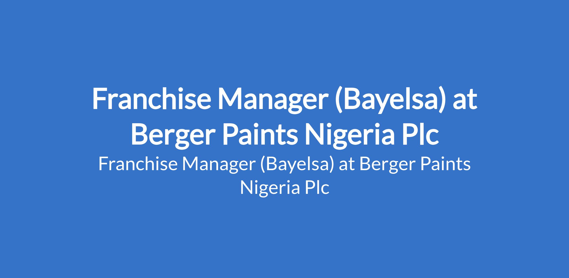 Berger Paints Nigeria Plc is recruiting to fill the position of: Franchise Manager. The position is located in Bayelsa State. Interested candidates should possess relevant qualifications.