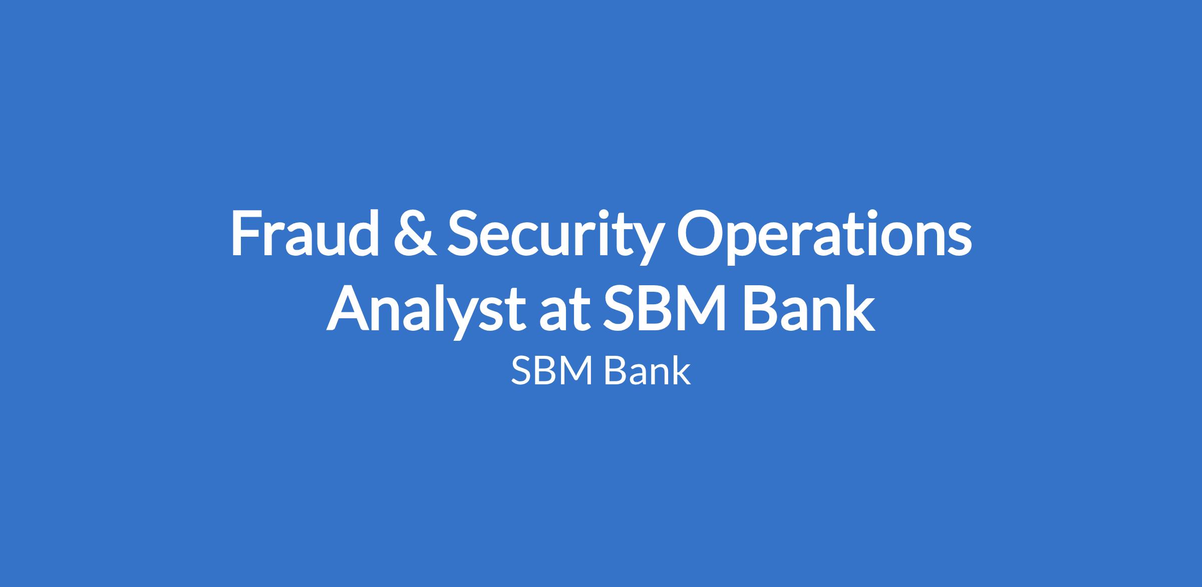 Fraud & Security Operations Analyst at SBM Bank