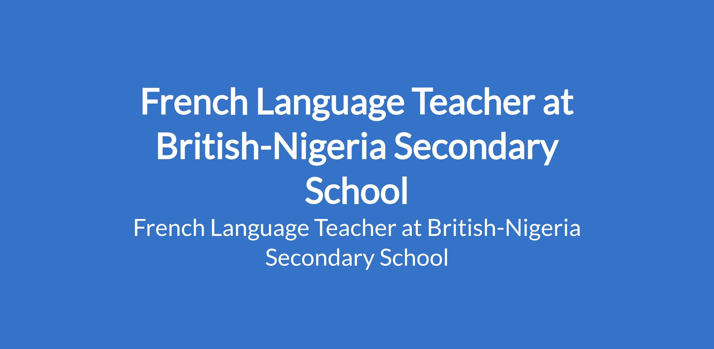 British-Nigeria Secondary School is recruiting to fill the position of: French Language Teacher. The position is located in Ota Toll Gate, Ogun State. Interested candidates should possess relevant qualifications.