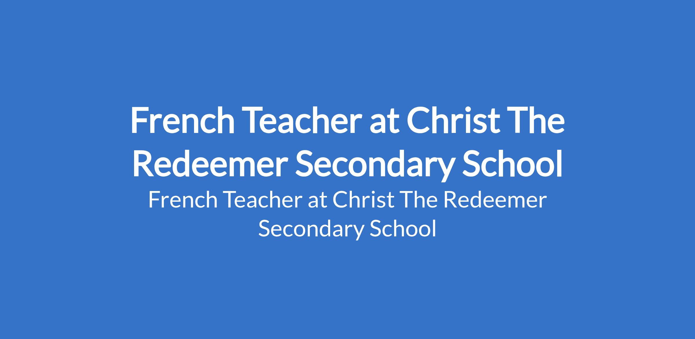 Christ The Redeemer Secondary School is recruiting to fill the position of: French Teacher. The position is located in Festac Town, Lagos State. Interested candidates should possess a B.Sc / B.A / B.Ed / HND with 1 2 years teaching experience in a recognized school.