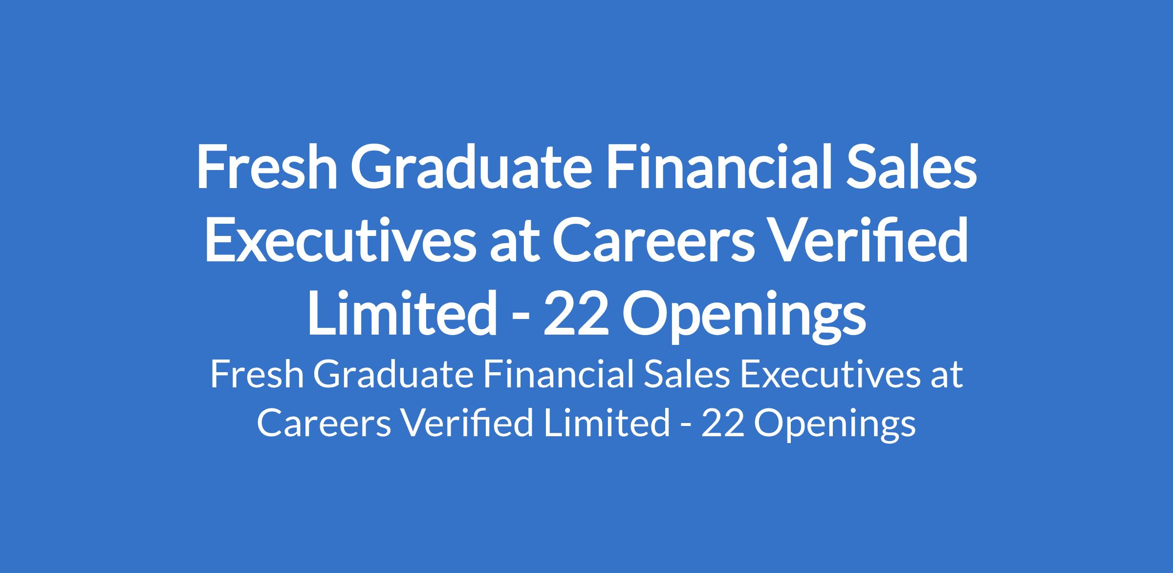 Careers Verified Limited is recruiting to fill the position of: Fresh Graduate Financial Sales Executive. The position is located in Abuja (FCT), Abia, Akwa Ibom, Anambra, Bayelsa, Benue, Cross River, Delta, Ebonyi, Edo, Ekiti, Enugu, Imo, Kogi, Lagos, Ogun, Ondo, Osun, Oyo, Plateau, Rivers and Taraba States. Salary: N90,000 - N93,000 per month. Interested candidates should possess a Bachelors Degree in Business Administration, Finance, Economics, Marketing, or a related field with 02 years of experience (NYSC members or recent graduates are encouraged to apply).