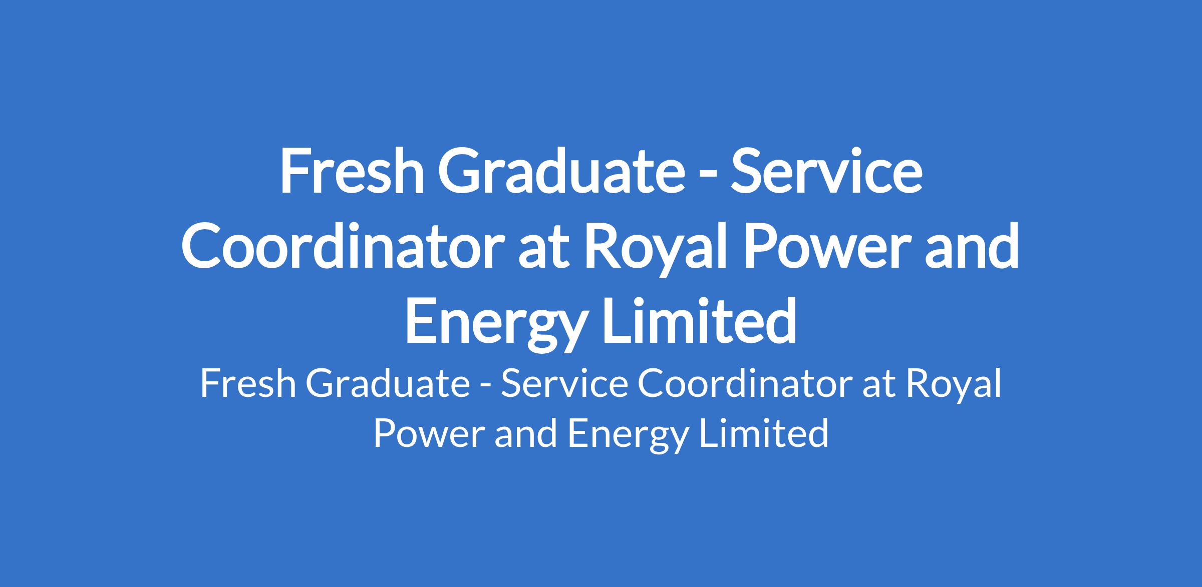 Fresh Graduate - Service Coordinator at Royal Power and Energy Limited