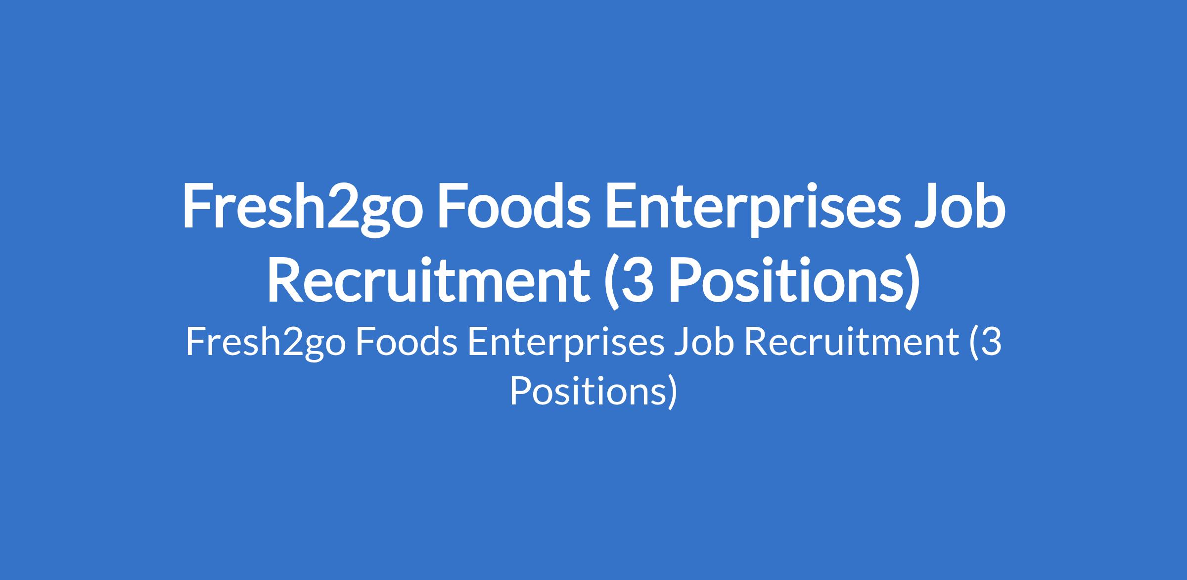 Fresh2go Foods Enterprises Job Recruitment (3 Positions)