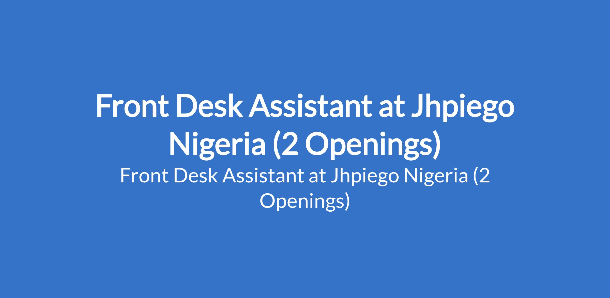 Jhpiego Nigeria is recruiting to fill the position of: Front Desk Assistant. The position is located in Abuja and Abakaliki - Ebonyi State. Interested candidates should possess a minimum of HND or Bachelors Degree in Administration or a related field with 12 years of relevant work experience in a similar role.