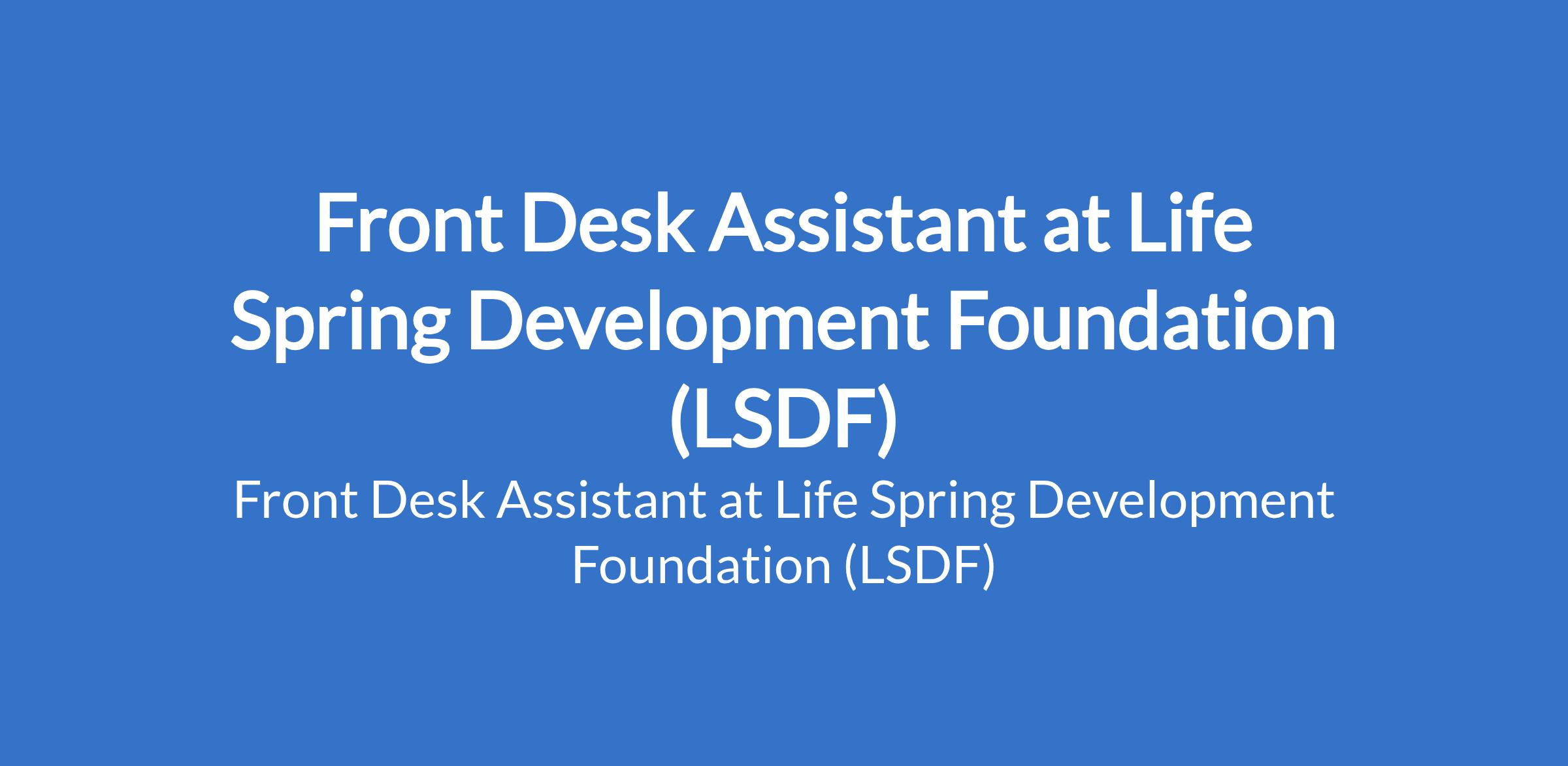 Life Spring Development Foundation (LSDF) is recruiting to fill the position of: Front Desk Assistant. The position is located in Abuja. Interested candidates should possess a Bachelors Degree in Business Administration, Secretariat Studies, Sociology or related disciplines with minimum of 5 years experience in a similar administrative or front desk role, preferably within an NGO or corporate environment.