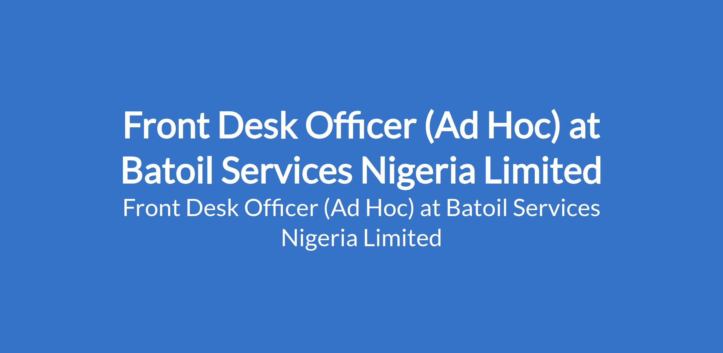 Batoil Services Nigeria Limited is recruiting to fill the position of: Front Desk Officer (Ad Hoc). The position is located in Lekki, Lagos State. Interested candidates should possess an HND, B.Sc, additional qualifications will be an advantage, (NYSC Corpers are encouraged to apply) with proven experience as front desk representative will be an added advantage.