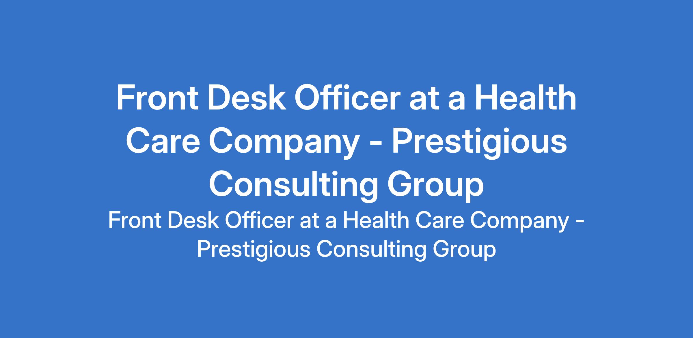 Prestigious Consulting Group - Our client, a Health Care Company is recruiting to fill the position of: Front Desk Officer. The position is located in Lekki, Lagos State. Salary: N115,000 monthly. Interested candidates should possess a Bachelor's Degree with 1 - 3 years experience.