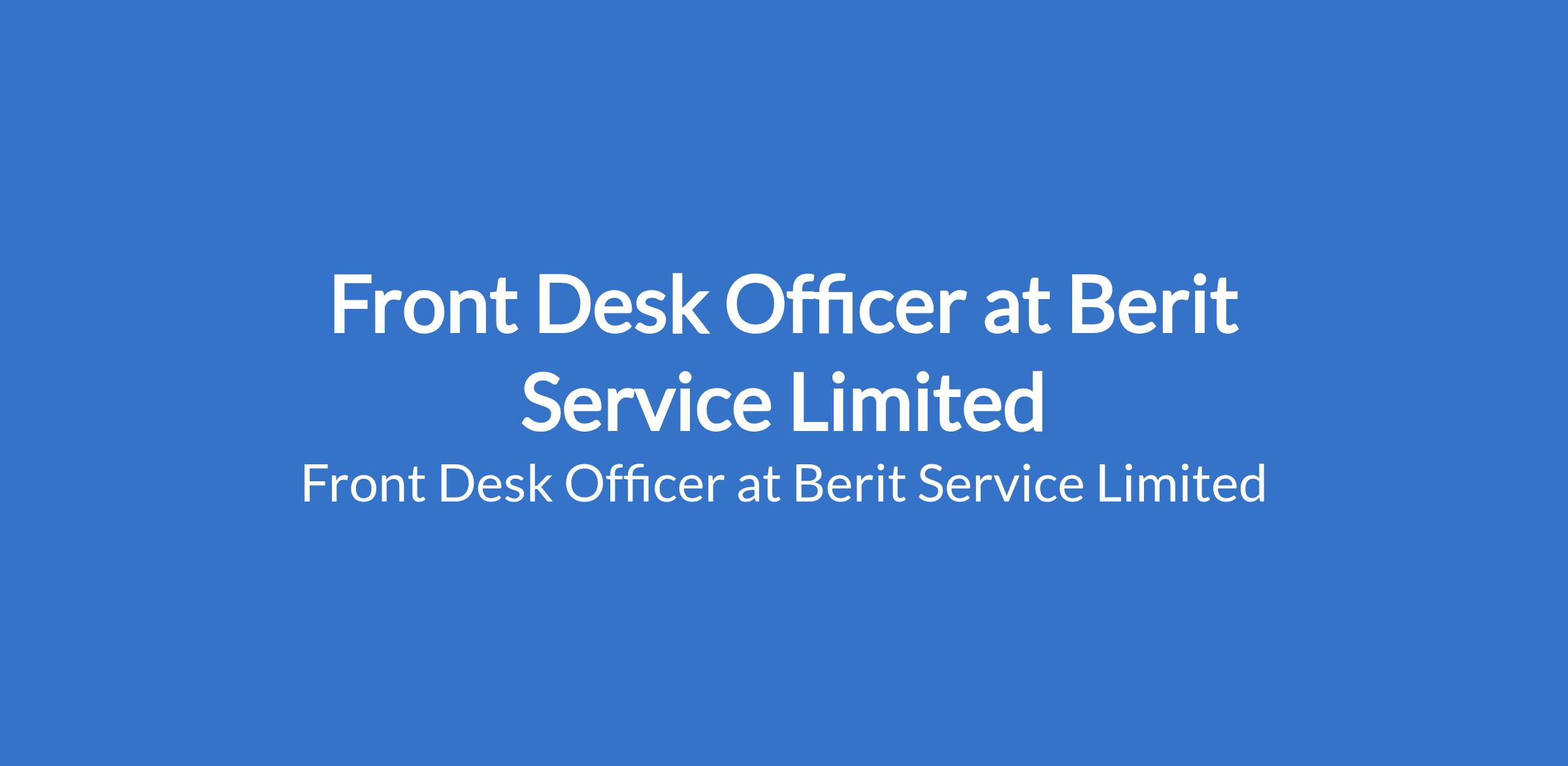 Berit Service Limited is recruiting to fill the position of: Front Desk Officer. The position is located in Lagos State. Salary: N150,000 - N300,000 per month. The ideal candidate will be well-versed in departmental procedures and policies and will be able to actively discover new ways to do the job more efficiently. Interested candidates should possess relevant qualifications and work experience.