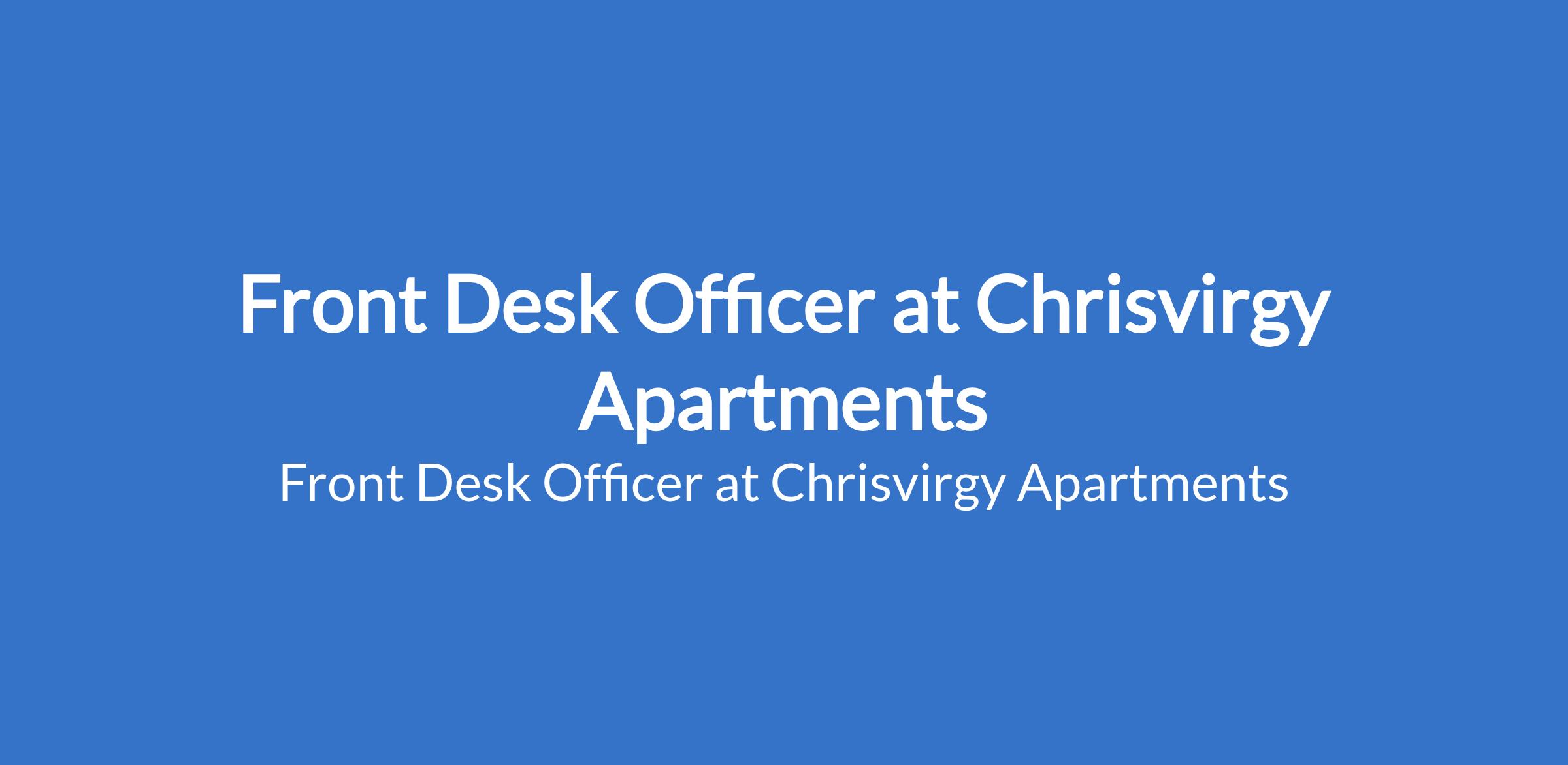 Front Desk Officer at Chrisvirgy Apartments