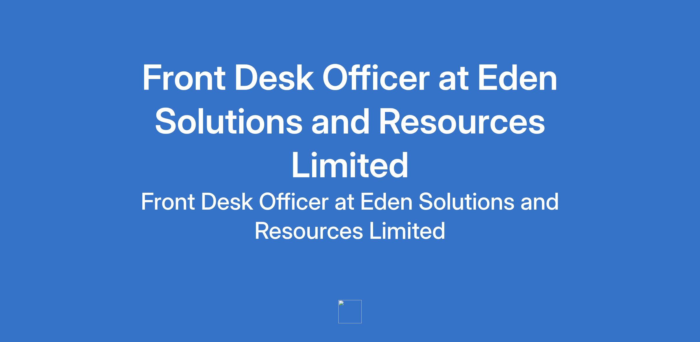 Eden Solutions and Resources Limited is recruiting to fill the position of: Front Desk. The position is located in Lugbe, Abuja (FCT). Salary: N70,000 - N80,000 per month. Interested candidates should possess a relevant qualification.