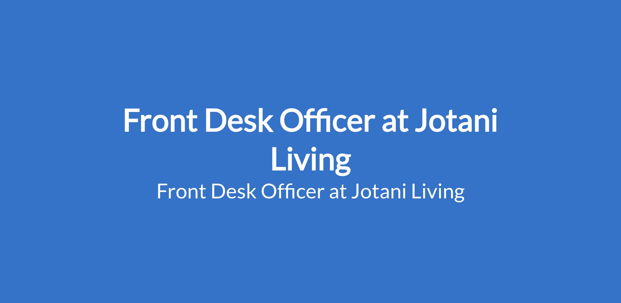 Jotani Living is recruiting to fill the position of: Front Desk Officer. The position is located in Lekki, Lagos State. Salary: N80,000 per month. Interested candidates should possess an ND / HND / B.Sc in a relevant field with previous experience in hospitality or customer service is an advantage.