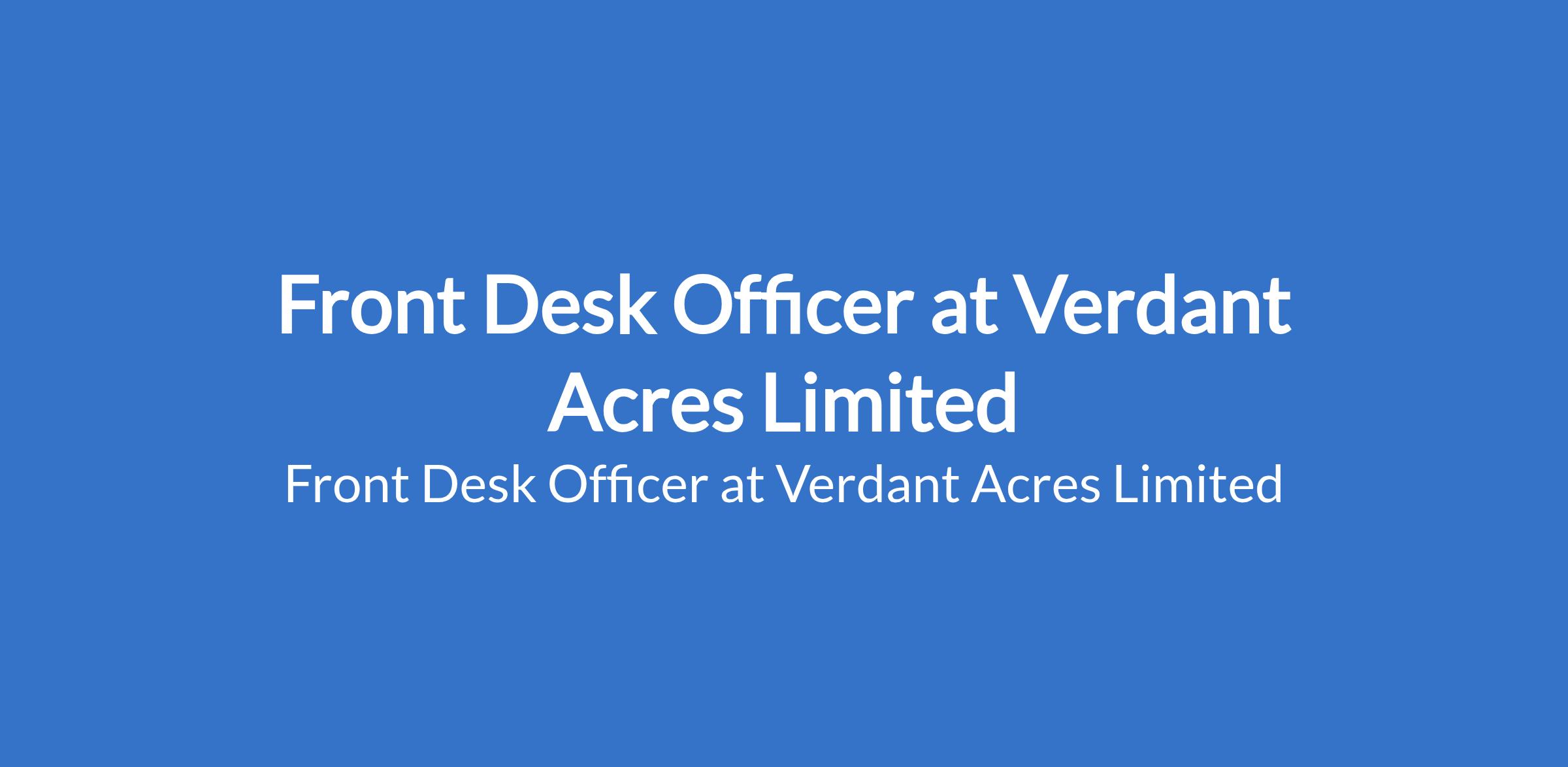 Verdant Acres Limited is recruiting to fill the position of: Front Desk Officer. The position is located in Mkpat Enin, Akwa Ibom State. Interested candidates should possess a High School Diploma or equivalent; additional education or certification is a plus with previous experience in a front desk, receptionist, or customer service role is preferred.