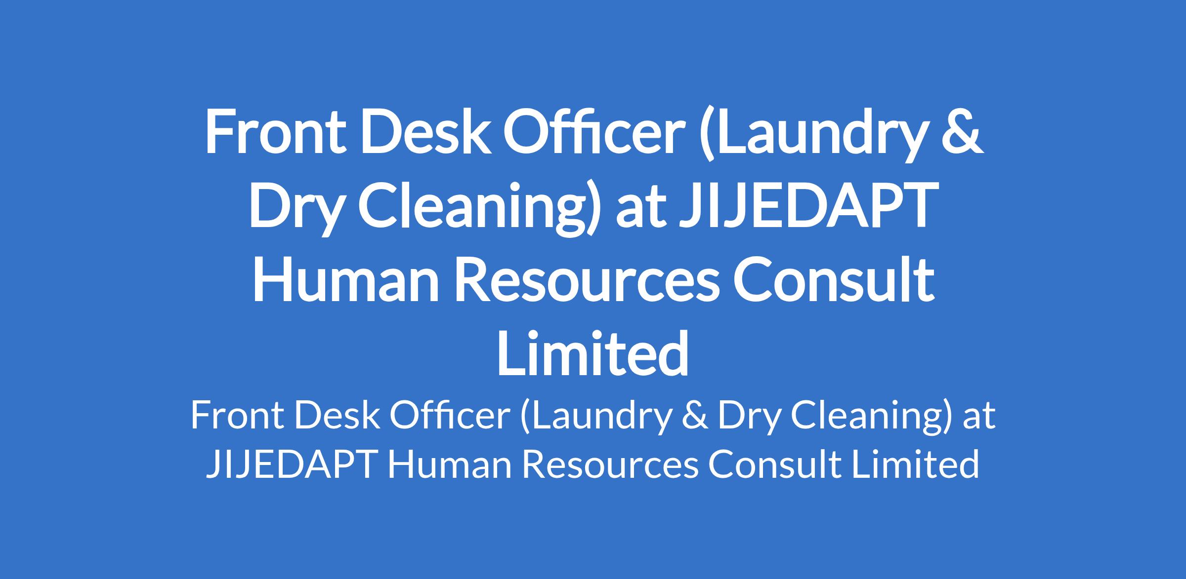JIJEDAPT Human Resources Consult Limited is recruiting to fill the position of: Front Desk Officer (Laundry & Dry Cleaning). The position is located in New Oko Oba (New Oko Oba is around Agege to Abule Egba and close to Fagba), Lagos State. Interested candidates should possess an OND / HND / BSc in any relevant field with 2 3 years of experience in customer service or front desk roles (preferably in laundry, retail, or hospitality).